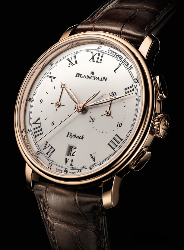 Новая модель коллекции Villeret имеет исключительный часовой механизм с частотой работы 36 000 пк/час из 322 частей, включая кремниевую балансирную пружину. Также имеется аппарат мгновенного изменения времени, перезапускающий хронограф простым нажатием кнопки возле отметки в 4 часа. Эти функции впервые в истории дополнены пульсометром. В наше время, когда для проверки пульса требуется точный подсчет ударов сердца на протяжении 60 секунд, пульсометр облегчает работу врачам и медсестрам, проводя эту операции значительно быстрее. Стрелка хронографа в сочетании со специальной шкалой позволяет визуально отобразить биение сердце пациента прямо на циферблате без необходимости расчетов. Все, что требуется для определения пульса по шкале пульсометра, это запустить хронограф, а затем остановить его, отсчитав 30 ударов сердца. Новая модель имеет изогнутый белый циферблат с эмалированным покрытием. На центральной части циферблата имеются 30-минутные и 12-часовые счетчики, а также окно даты возле отметки в 6 часов. Через сапфировое стекло задней части корпуса видно последнюю версию калибра Blancpain с ротором, украшенным сотообразным узором. Корпус из красного золота диаметром 43.6 мм гармонирует с коричневым ремешком из кожи аллигатора, подчеркивая элегантность этой модели.