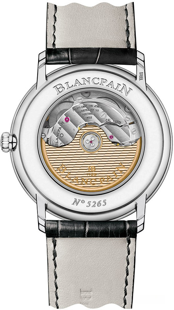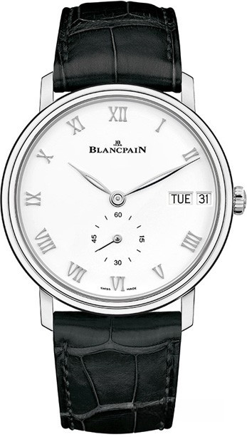 Часы Blancpain Villeret Day Date представлены в корпусе из нержавеющей стали размером 40 мм и водонепроницаемостью 30 метров. Внутри корпуса установлен автоматический механизм Калибр 1160DD с запасом хода 72 часа. На белом циферблате отображаются часы, минуты, секунды, дата, день недели. Часы комплектуются ремешком из кожи аллигатора с вставкой из нержавеющей стали.