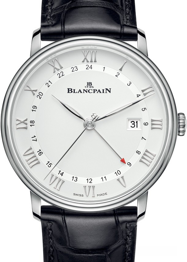 Часы Blancpain Villeret GMT Date представлены в корпусе из неравеющей стали размером 40 х 10.28 мм и водонепроницаемостью 30 метров. Внутри корпуса установлен автоматический механизм, Калибр 5A50, обладающий запасом хода 100 часов. На серебристом циферблате отображаются часы, минуты, секунды, дата, время второго часового пояса. Часы поставляются на ремешке из кожи аллигатора с вставкой из нержавеющей стали.