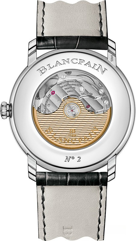 Впервые в коллекции Villeret, самой классической из всех в ассортименте Blancpain, появилась модель с «большой датой». Когда часовщики Blancpain представляли себе Калибр 6950, они имели своей целью повысить степень читаемости даты и одновременно обеспечить мгновенную ее сменяемость ровно в полночь. Результатом разработки стал автоматический механизм с двумя заводными барабанами и с ударостойким механизмом индикации даты. Villeret Grande Date гармонично вписывается в классическую коллекцию Villeret. Ключевые опознавательные элементы часов Villeret органично вплетены в дизайн новинки. Характерный двухступенчатый корпус выполнен из нержавеющей стали и имеет диаметр 40 мм. На белом циферблате разместились римские цифры, стрелки, окошко даты на отметке «6» часов. Прозрачная задняя крышка из сапфирового стекла позволяет оценить отделку механизма с сотовидным декором на роторе. Завершает ансамбль ремешок из кожи аллигатора черного цвета.