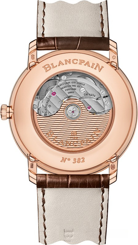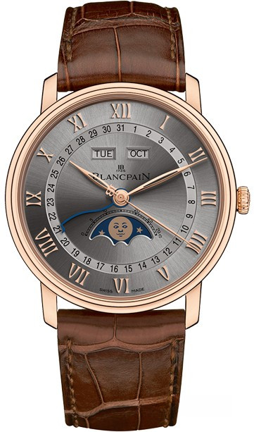 В 2015 году компания решила дополнить свою популярною модель Villeret Quantieme Complet Moon Phase Complete Calendar с новыми серыми циферблатами. Данная модель выполнена из розового золота 18к, в диаметре 40 миллиметров и толщиной в 10.94 мм. Механизм с автоматическим заводом, Калибр Blancpain 6654, с запасом хода 72 часа. Циферблат серый. Центральная часовая, минутная и секундная стрелки, синяя стрелка из вороненой стали показывает дату, окошко дня недели и месяца в положении 12 часов, индикатор фазы Луны в положении 6 часов. Часы комплектуются ремешком из кожи аллигатора с застежкой из розового золота 18к. Водонепроницаемость 30 метров. Специальные корректоры индикации под ушками.