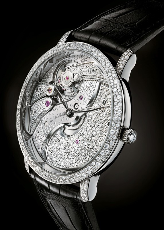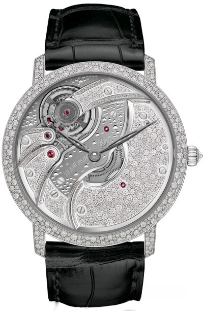 Часы Mouvement Inverse удивляют своим дизайном, их циферблат выполнен в виде обратной стороны часов, открывающей вид на механизм. В общей сложности это часы с механизмом с ручным заводом, Калибр 152B, обеспечивающим запас хода 40 часов. На циферблате, усыпанном белыми бриллиантами, отображаются часы и минуты. Корпус размером 43 х 9.5 мм изготовлен из белого золота 18к. Его водостойкость составляет 30 метров. Часы поставляются на элегантном черном ремешке из кожи аллигатора с вставкой из белого золота 18к. Корпус инкрустирован снежным паве из белых бриллиантов.