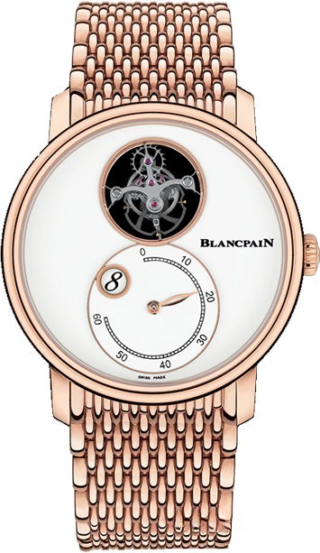 Часы Blancpain Villeret Tourbillon Volant Heure Sautante Minute Retrograde представлены в корпусе из розового золота 18к размером 42 х 11 мм и водонепроницаемостью 30 метров. Внутри корпуса установлен механизм с ручным заводом, Калибр 260MR с запасом хода 6 дней. На белом циферблате отображаются часы, минуты, клеть турбийона. Часы поставляются на браслете из розового золота 18к.