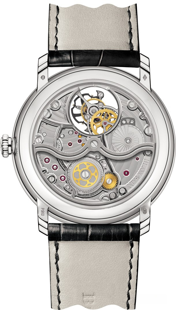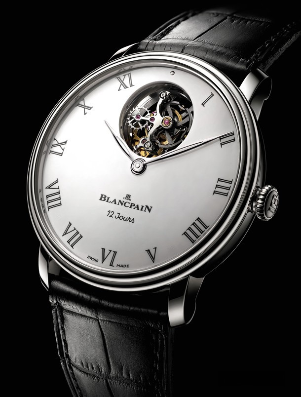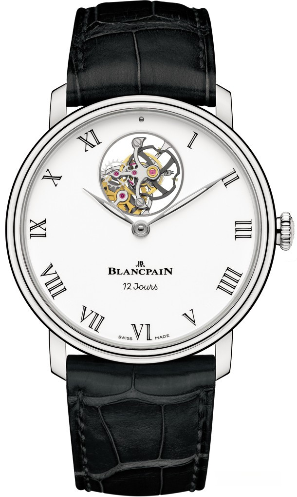 Разработанный в часовых мастерских Мануфактуры, новый Калибр 242 поднимает техническую сущность усложнения «турбийон» на новый уровень путем совершенствования рекордной во всех отношениях автономии Калибра 25, увидевшего свет в 1998 году. Он стал первым в мире турбийонным механизмом с автоподзаводом, обеспечивающим запас хода в 8 дней. Новый механизм с автоподзаводом обладает исключительным 12-дневным запасом хода при наличии одного барабана. Состоящий из 243 компонентов, собранных в единый узел в пределах пространства размером всего 6,10 мм по высоте и 30,60 мм в диаметре, он оснащен кремниевой спиралью баланса и паллетной вилкой в целях устранения воздействия магнитных полей. На циферблате смещенная от центра укрупненная каретка турбийона в положении «12» часов предлагает прекрасный вид на баланс и спусковое колесо новой конструкции. Поскольку парящий турбийон предполагает отсутствие у каретки верхнего моста, обеспечивается беспрепятственный обзор этого сложного механизма. Каретка совершает один оборот в минуту для того, чтобы компенсировать влияние гравитации. Как отражение исторического наследия коллекции Villeret, для изготовления циферблата и нанесения римских цифр была использована техника горячего эмалирования гран фё. По циферблату плавно скользят стрелки в виде листка шалфея с прорезью. Эти часы в двухступенчатом 42-мм корпусе будут представлены в лимитированной платиновой серии, а также в версии из 18К красного золота в сочетании с ремешком шоколадно-коричневого цвета из кожи аллигатора на подкладке из телячьей кожи alzavel, снабженном тройной раскладывающейся застежкой.