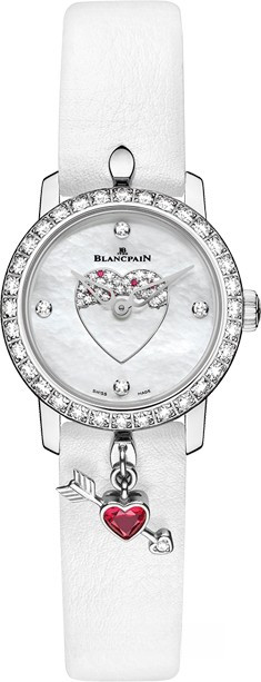 Blancpain отдает дань коллекции Ladybird, которая сыграла столь важную роль в истории женских часов. Новый автоматический механизм, 6150 и сегодня остается одним из самых маленьких в мире. Белый жемчужный циферблат украшен белыми бриллиантами и красными рубинами. Кожаный ремешок придает часам исключительное совершенство. Безель инкрустирован 32 бриллиантами. Листьевидные стрелки указывают часы и минуты. Что касается корпуса, он сделан из белого золота. Прозрачная задняя крышка позволяет увидеть работу механизма.