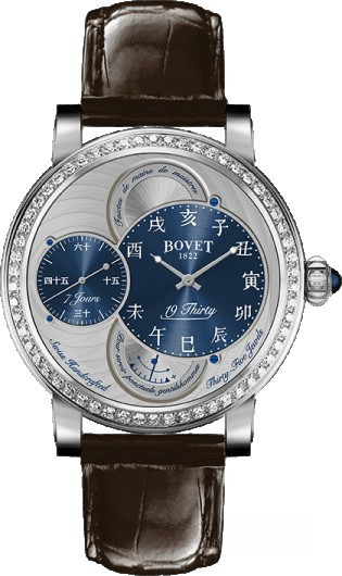 Вдохновленные старинными карманными часами собственного производства, Bovet представили набор великолепных изысканных моделей "19Thirty", которые являются основой совершенно новой коллекции мануфактуры. Вдохновленная на создание ранним периодом 20-го века "когда большинство часов постепенно переходили из карманов на запястья". Корпус часов изготовлен из нержавеющей стали. Коллекция характеризуется двумя различными корпусами размером 42 х 9 мм: более традиционный корпус Dimier и корпус Fleurier, заводная головка и изгиб которого в позиции 12 часов напоминают о моделях начала истории Bovet. Коллекционерам предоставляется циферблат на выбор: черный, синий или цвета слоновой кости с арабскими, римскими или китайскими цифрами, которые вносят свою лепту истории в циферблаты Bovet. Часы работают при помощи совершенно нового мануфактурного Калибра, созданного часовщиками и мастерами Dimier 1738 (дочерняя компания Bovet, которая разрабатывает часовые механизмы). Механический Калибр 15BM04 с одним барабаном и ручным заводом имеет надежный семидневный запас хода и виден сквозь сапфировое стекло задней части корпуса. Он выделяется красивой симметрией и отделкой и выглядит не менее изысканно, чем лицевая сторона часов. Безель из 66-ти белых бриллиантов общим весом 1.1 ct.