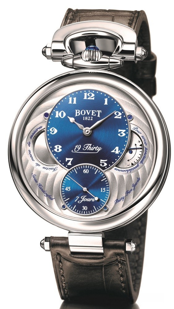 Вдохновленные старинными карманными часами собственного производства, Bovet представили набор великолепных изысканных моделей "19Thirty", которые являются основой совершенно новой коллекции мануфактуры. Вдохновленная на создание ранним периодом 20-го века "когда большинство часов постепенно переходили из карманов на запястья", коллекция 19Thirty также выделяется тем, что это первая линейка стальных часов бренда. Коллекция характеризуется двумя различными корпусами размером 42 х 9 мм: более традиционный корпус Dimier и корпус Fleurier, заводная головка и изгиб которого в позиции 12 часов напоминают о моделях начала истории Bovet. В дополнение к выбору одного из двух стальных корпусов, коллекционерам также предоставляется набор циферблатов: черный, синий или цвета слоновой кости с арабскими, римскими или китайскими цифрами, которые вносят свою лепту истории в циферблаты Bovet. Часы работают при помощи совершенно нового мануфактурного Калибра, созданного часовщиками и мастерами Dimier 1738 (дочерняя компания Bovet, которая разрабатывает часовые механизмы). Механический Калибр 15BM04 с одним барабаном и ручным заводом имеет надежный семидневный запас хода и виден сквозь сапфировое стекло задней части корпуса. Он выделяется красивой симметрией и отделкой и выглядит не менее изысканно, чем лицевая сторона часов.