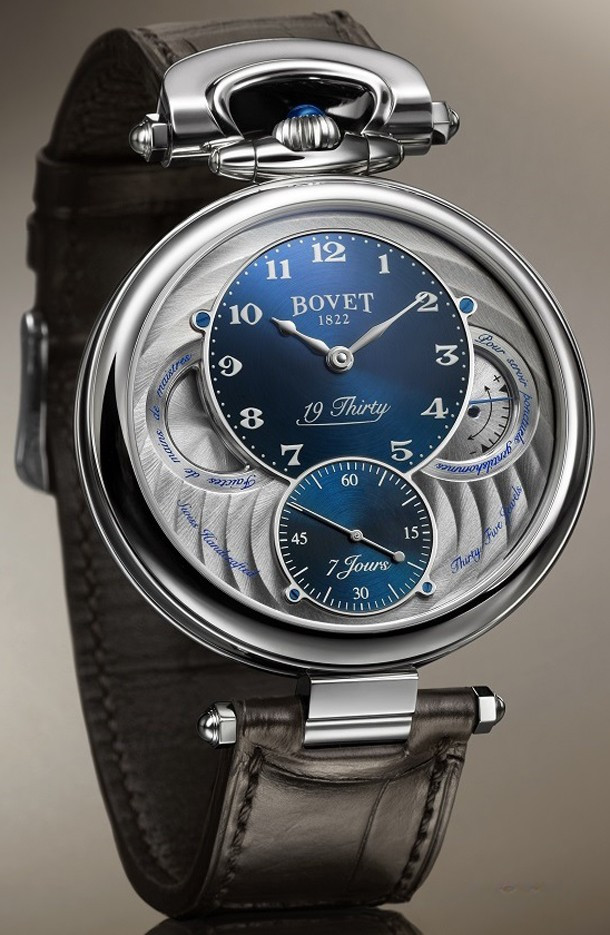 Вдохновленные старинными карманными часами собственного производства, Bovet представили набор великолепных изысканных моделей "19Thirty", которые являются основой совершенно новой коллекции мануфактуры. Вдохновленная на создание ранним периодом 20-го века "когда большинство часов постепенно переходили из карманов на запястья", коллекция 19Thirty также выделяется тем, что это первая линейка стальных часов бренда. Коллекция характеризуется двумя различными корпусами размером 42 х 9 мм: более традиционный корпус Dimier и корпус Fleurier, заводная головка и изгиб которого в позиции 12 часов напоминают о моделях начала истории Bovet. В дополнение к выбору одного из двух стальных корпусов, коллекционерам также предоставляется набор циферблатов: черный, синий или цвета слоновой кости с арабскими, римскими или китайскими цифрами, которые вносят свою лепту истории в циферблаты Bovet. Часы работают при помощи совершенно нового мануфактурного Калибра, созданного часовщиками и мастерами Dimier 1738 (дочерняя компания Bovet, которая разрабатывает часовые механизмы). Механический Калибр 15BM04 с одним барабаном и ручным заводом имеет надежный семидневный запас хода и виден сквозь сапфировое стекло задней части корпуса. Он выделяется красивой симметрией и отделкой и выглядит не менее изысканно, чем лицевая сторона часов.
