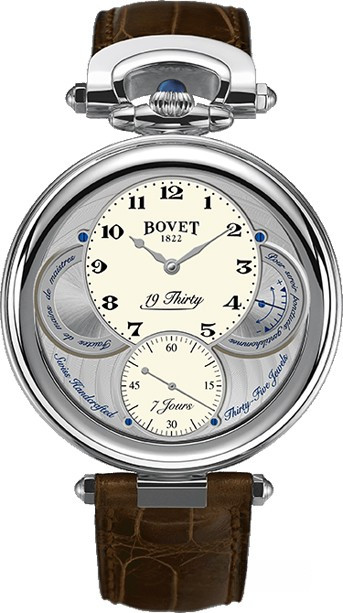 Вдохновленные старинными карманными часами собственного производства, Bovet представили набор великолепных изысканных моделей "19Thirty", которые являются основой совершенно новой коллекции мануфактуры. Вдохновленная на создание ранним периодом 20-го века "когда большинство часов постепенно переходили из карманов на запястья". Корпус часов изготовлен из нержавеющей стали. Коллекция характеризуется двумя различными корпусами размером 42 х 9 мм: более традиционный корпус Dimier и корпус Fleurier, заводная головка и изгиб которого в позиции 12 часов напоминают о моделях начала истории Bovet. Циферблат белого цвета. Часы работают при помощи совершенно нового мануфактурного Калибра, созданного часовщиками и мастерами Dimier 1738 (дочерняя компания Bovet, которая разрабатывает часовые механизмы). Механический Калибр 15BM04 с одним барабаном и ручным заводом имеет надежный семидневный запас хода и виден сквозь сапфировое стекло задней части корпуса. Он выделяется красивой симметрией и отделкой и выглядит не менее изысканно, чем лицевая сторона часов.
