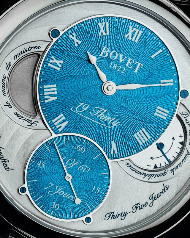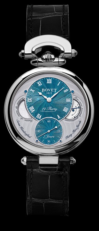 Вдохновленные старинными карманными часами собственного производства, Bovet представили набор великолепных изысканных моделей "19Thirty", которые являются основой совершенно новой коллекции мануфактуры. Вдохновленная на создание ранним периодом 20-го века "когда большинство часов постепенно переходили из карманов на запястья". Корпус часов изготовлен из нержавеющей стали. Коллекция характеризуется корпусом размером 42 х 9 мм. Циферблат синий. Часы работают при помощи совершенно нового мануфактурного Калибра, созданного часовщиками и мастерами Dimier 1738 (дочерняя компания Bovet, которая разрабатывает часовые механизмы). Механический Калибр 15BM04 с одним барабаном и ручным заводом имеет надежный семидневный запас хода и виден сквозь сапфировое стекло задней части корпуса. Он выделяется красивой симметрией и отделкой и выглядит не менее изысканно, чем лицевая сторона часов.