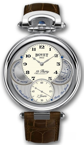 Вдохновленные старинными карманными часами собственного производства, Bovet представили набор великолепных изысканных моделей "19Thirty", которые являются основой совершенно новой коллекции мануфактуры. Вдохновленная на создание ранним периодом 20-го века "когда большинство часов постепенно переходили из карманов на запястья", коллекция 19Thirty также выделяется тем, что это первая линейка стальных часов бренда. Коллекция характеризуется двумя различными корпусами размером 42 х 9 мм: более традиционный корпус Dimier и корпус Fleurier, заводная головка и изгиб которого в позиции 12 часов напоминают о моделях начала истории Bovet. В дополнение к выбору одного из двух стальных корпусов, коллекционерам также предоставляется набор циферблатов: черный, синий или цвета слоновой кости с арабскими, римскими или китайскими цифрами, которые вносят свою лепту истории в циферблаты Bovet. Часы работают при помощи совершенно нового мануфактурного Калибра, созданного часовщиками и мастерами Dimier 1738 (дочерняя компания Bovet, которая разрабатывает часовые механизмы). Механический Калибр 15BM04 с одним барабаном и ручным заводом имеет надежный семидневный запас хода и виден сквозь сапфировое стекло задней части корпуса. Он выделяется красивой симметрией и отделкой и выглядит не менее изысканно, чем лицевая сторона часов.
