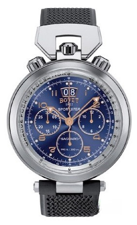 Модель часов Saguaro Chronograph изготовлена из нержавеющей стали, размер корпуса составляет 46 мм, водонепроницаемость до 300 метров. Внутри корпуса установлен автоматический механизм 13BA01 с запасом хода 42 часа, который является сертифицированным хронометром. На синем циферблате отображаются часы, минуты, секунды, дата и пульсомер. Накопители хронографа расположены на 3-х и 9-ти часах, увеличенная дата находится в позиции 12-ти часов. часы комплектуются каучуковым ремешком с вставкой из нержавеющей стали.