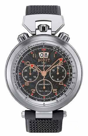 Модель часов Saguaro Chronograph изготовлена из нержавеющей стали, размер корпуса составляет 46 мм, водонепроницаемость до 300 метров. Внутри корпуса установлен автоматический механизм 13BA01 с запасом хода 42 часа, который является сертифицированным хронометром. На циферблате цвета черного метеорита отображаются часы, минуты, секунды, дата и пульсомер. Накопители хронографа расположены на 3-х и 9-ти часах, увеличенная дата находится в позиции 12-ти часов. Часы комплектуются каучуковым ремешком с вставкой из нержавеющей стали.