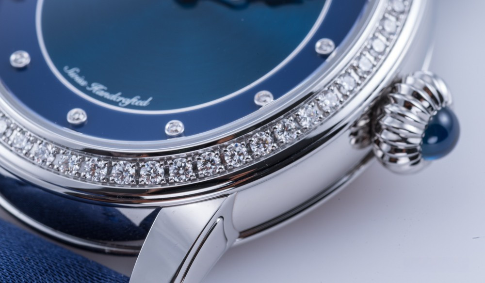 водонепроницаемость 30 м, безель из 52 белых бриллиантов общим весом 0.69 ct.
