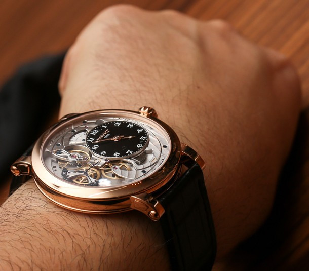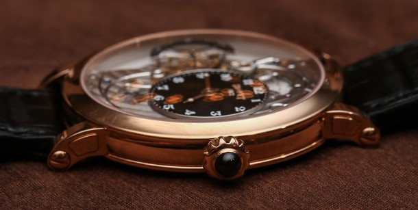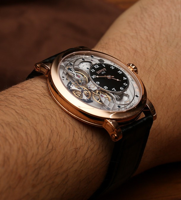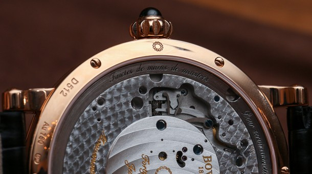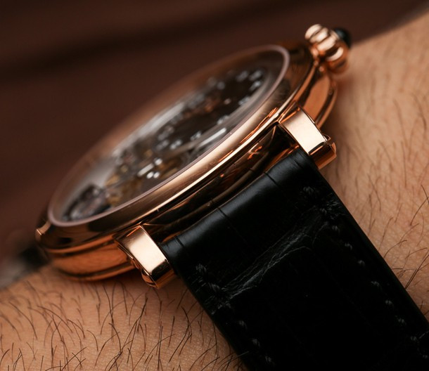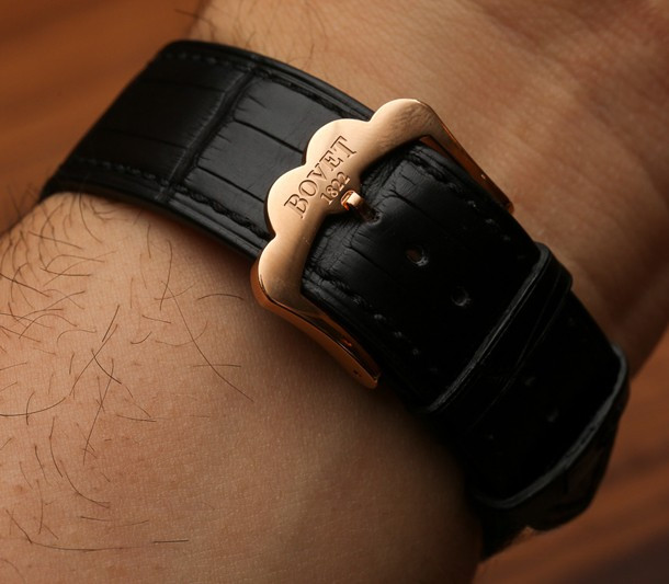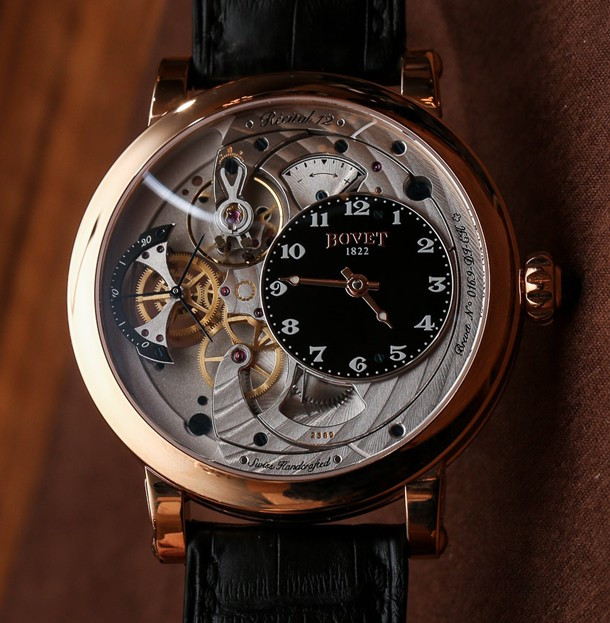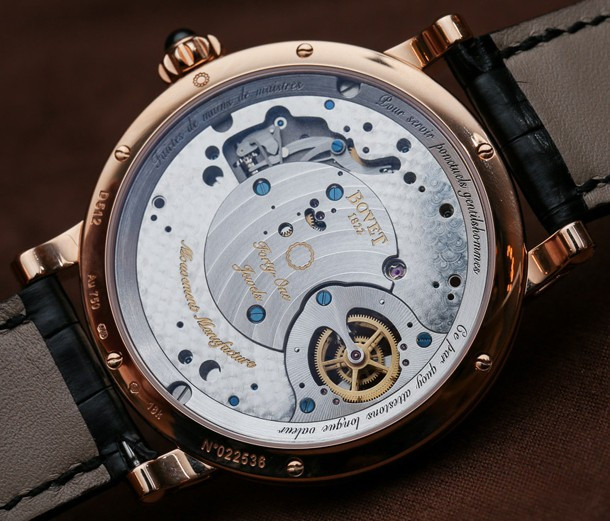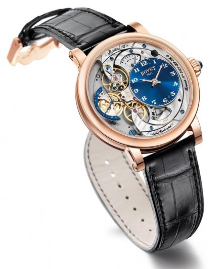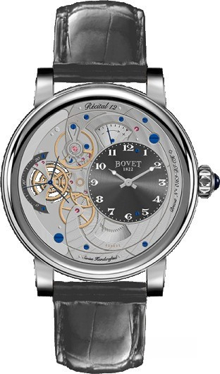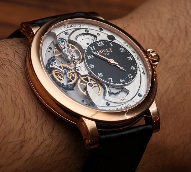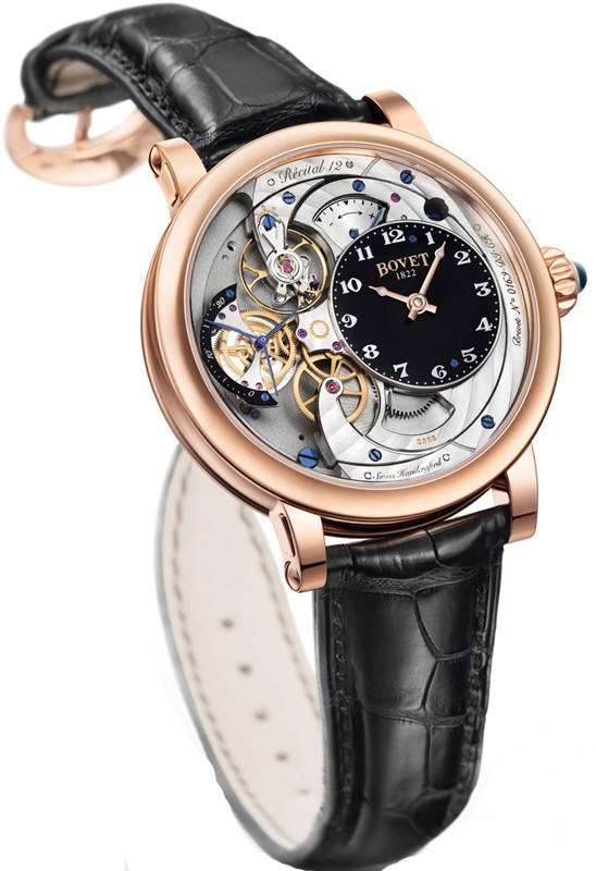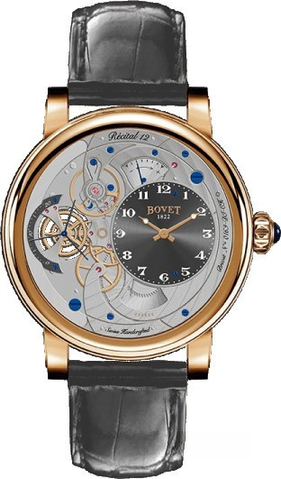 Часы Bovet Monsieur Dimier Recital 12 выпускаются в корпусе из розового золота 18к диаметром 42 мм и водонепроницаемостью до 30 метров. Внутри корпуса установлен механический Калибр Virtuoso II Spécialité Horlogère DIMIER 1738 (13.75-70-AI) с функциями часов, минут, секунд и запаса хода. Линза из сапфирового стекла покрывает циферблат. Часы поставляются на ремешке из кожи аллигатора. Серия ограничена 150 экземплярами.