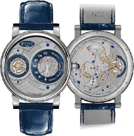 Мужские часы Bovet Dimier Recital 15 оснащены механизмом с ручным заводом, Калибр 13DM02-AIHSMR с запасом хода 5 дней. Диаметр корпуса 42 мм. Корпус часов изготовлен из 18-каратного белого золота. Циферблат синего цвета. Ремешок из кожи аллигатора, в комплекте — цепь из белого золота для ношения как карманные часы. Водонепроницаемы до 30 м. Функции: часы, минуты, секунды, индикатор запаса хода. Часы выпущены ограниченной серией 100 штук.