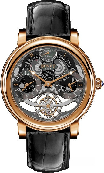 Часы Dimier Recital 16 выпускаются в корпусе из розового золота 18к размером 46 мм. Поставляются на ремешке из кожи аллигатора и соответствуют водонепроницаемости до 30 метров. Внутри корпуса находится механизм с ручным заводом 16DM01AI с балансовой частотой 21 600 пк/час, запасом хода 7 дней, 1-минутным турбийоном, а также функциями часов, минут и секунд. На черном с серым циферблате расположены индикаторы дня/ночи, второго часового пояса и запаса хода. Серия ограничена 20-ю экземплярами.