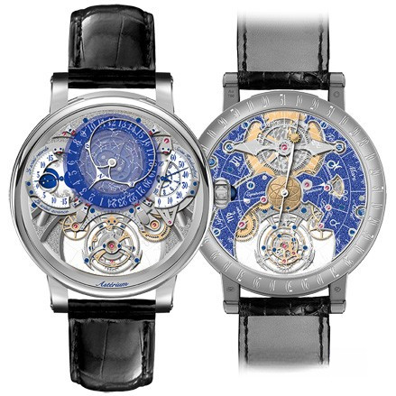Главное место на циферблате новой эксклюзивной модели занимает карта звездного неба. В соответствии с принципами разработки сложных функций, принятыми в компании BOVET 1822, данный панорамный индикатор небосвода отвечает требованиям точности, функциональности и интуитивной читаемости показаний. Инженеры BOVET 1822 методом лазерной гравировки нанесли изображения звезд и созвездий, видимых с Земли, на купол из прозрачного синего кварца. Благодаря покрытию Super-LumiNova® звезды сияют на этом небосводе даже ярче, чем в действительности.Паскаль Раффи и его команда разработали сложнейший механизм звездного календаря. Края карты звездного неба возвышаются над двумя двойными полусферическими индикаторами. Слева расположен полусферический индикатор фаз Луны, возвышающийся над индикатором уравнения времени. Отображение секунд запатентованному двухстороннему «парящему» турбийону. Запас хода составляет 10 дней.