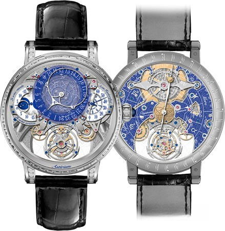 Главное место на циферблате новой эксклюзивной модели занимает карта звездного неба. В соответствии с принципами разработки сложных функций, принятыми в компании BOVET 1822, данный панорамный индикатор небосвода отвечает требованиям точности, функциональности и интуитивной читаемости показаний. Инженеры BOVET 1822 методом лазерной гравировки нанесли изображения звезд и созвездий, видимых с Земли, на купол из прозрачного синего кварца. Благодаря покрытию Super-LumiNova® звезды сияют на этом небосводе даже ярче, чем в действительности.Паскаль Раффи и его команда разработали сложнейший механизм звездного календаря. Края карты звездного неба возвышаются над двумя двойными полусферическими индикаторами. Слева расположен полусферический индикатор фаз Луны, возвышающийся над индикатором уравнения времени. Отображение секунд запатентованному двухстороннему «парящему» турбийону. Запас хода составляет 10 дней. Корпус инкрустирован белыми багетными бриллиантами.