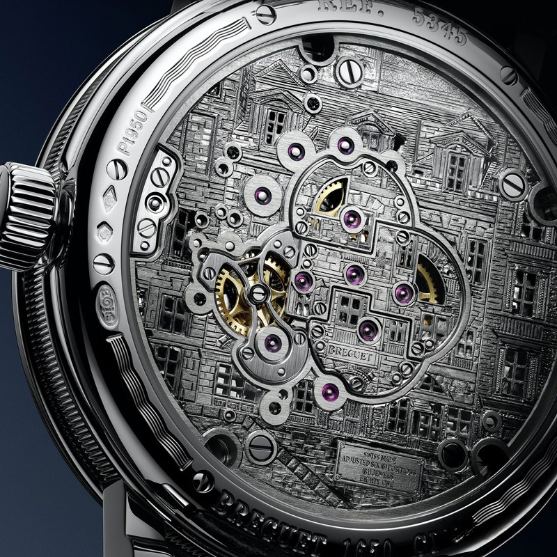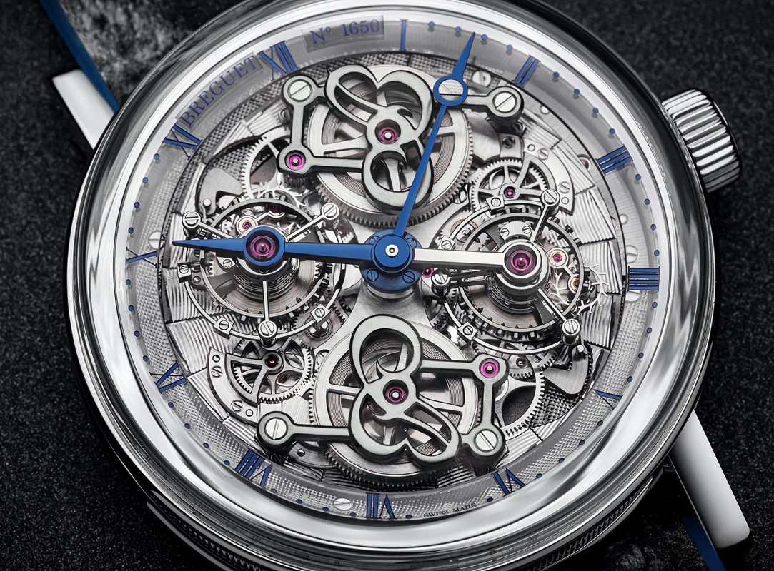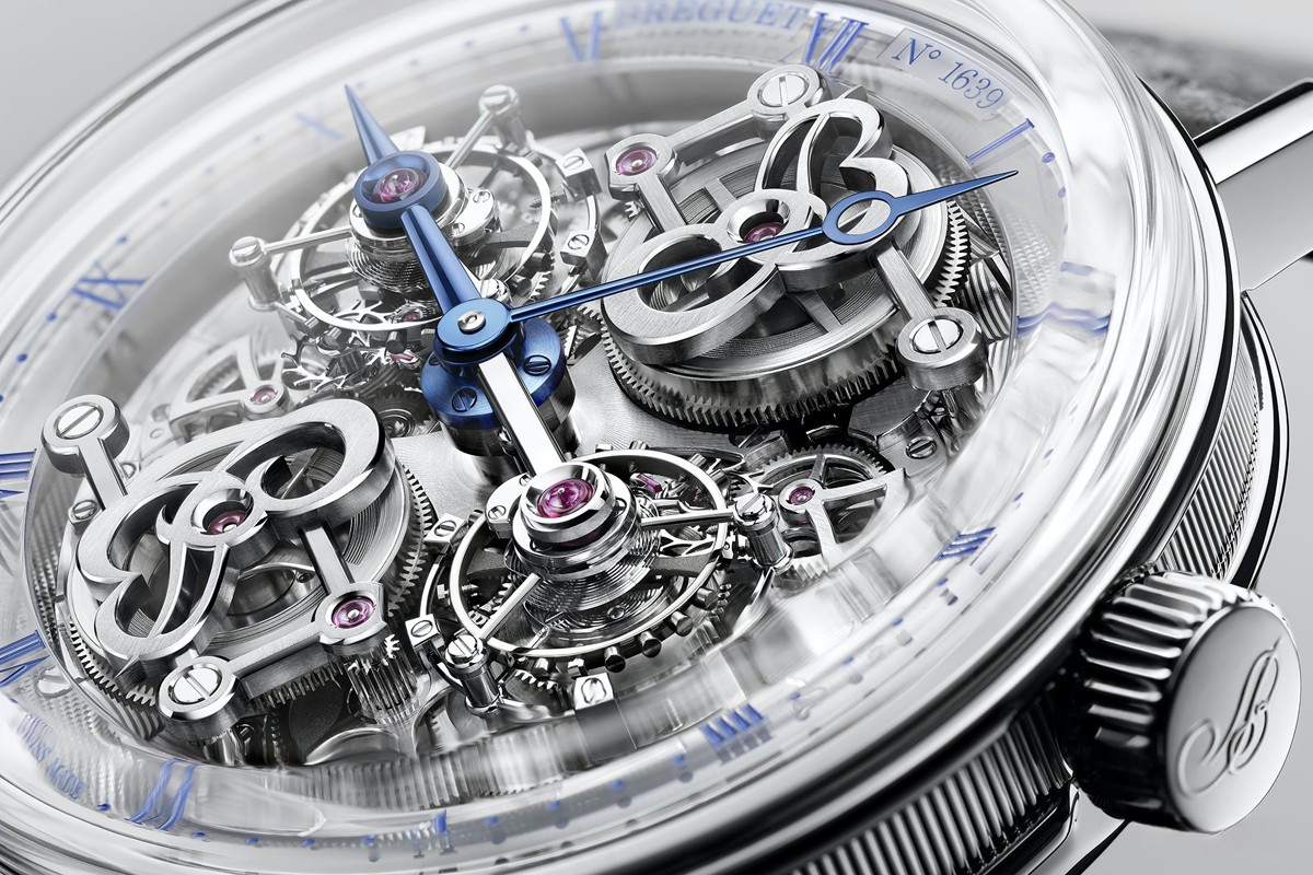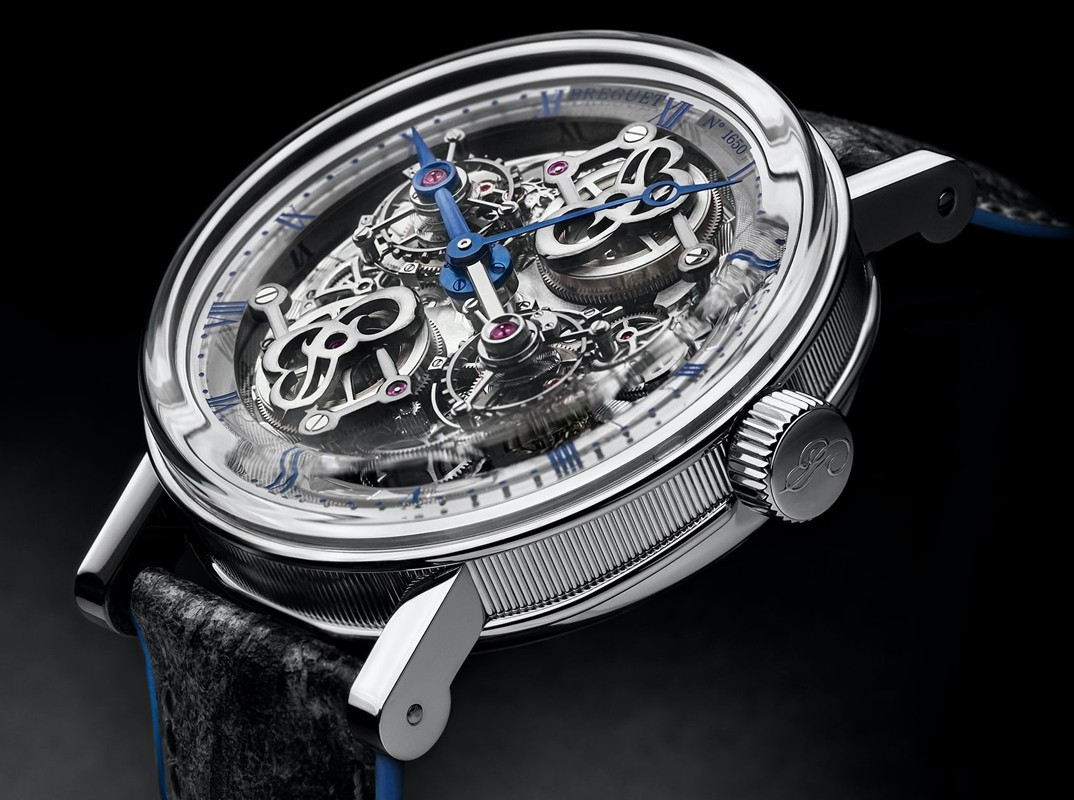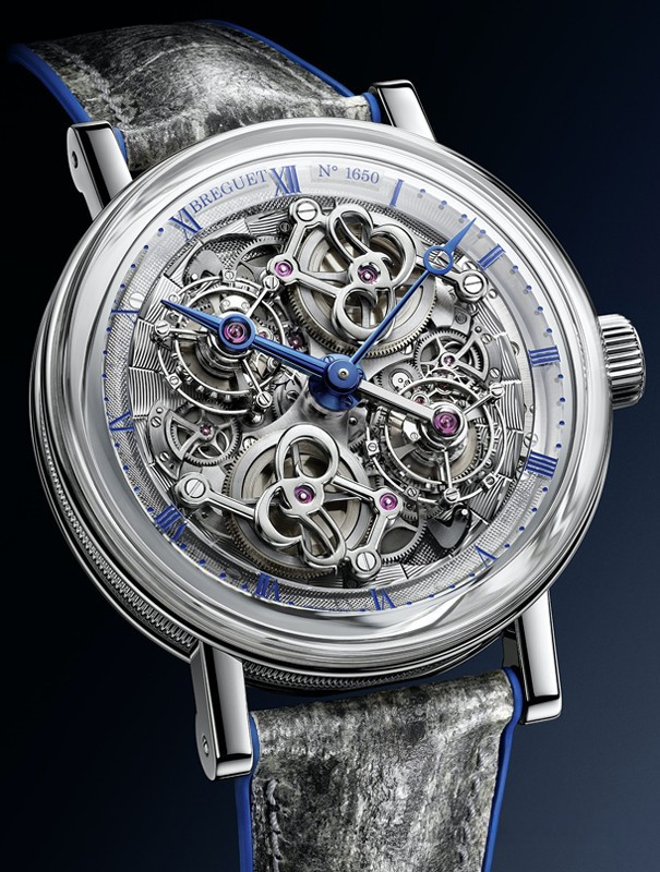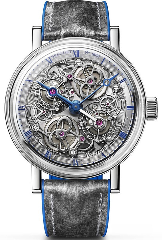 Часы Breguet Classique Double Tourbillon 5345 Quai De l’Horloge представлены в корпусе из платины 950 размером 46 x 16.8 мм водонепроницаемостью 30 метров. Внутри корпуса установлен скелетированный механизм с турбийоном с ручным заводом, Калибр Breguet 588N, обладающий запасом хода 50 часов. На сером циферблате отображаются часы, минуты, секунды. Часы оставляются на кожаном ремешке с платиновой вставкой.