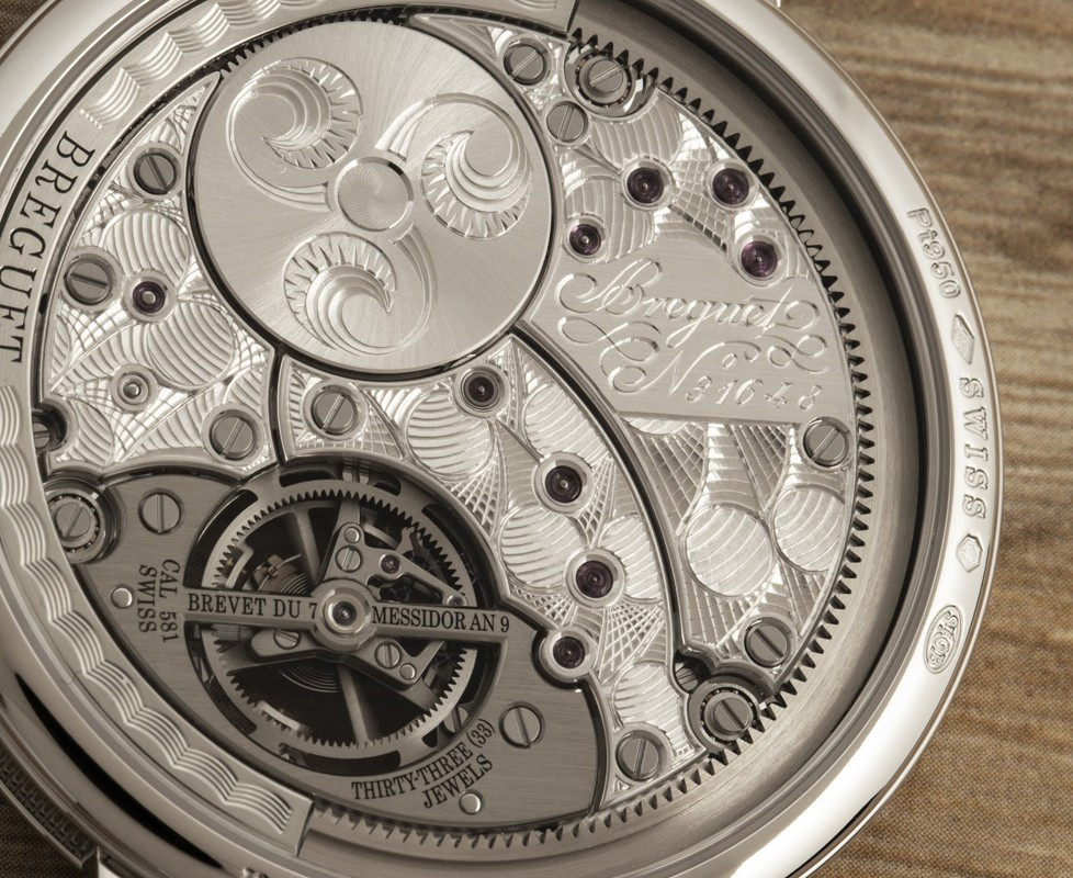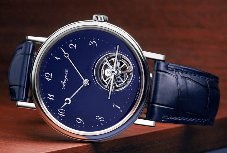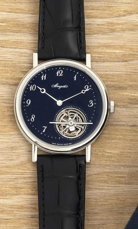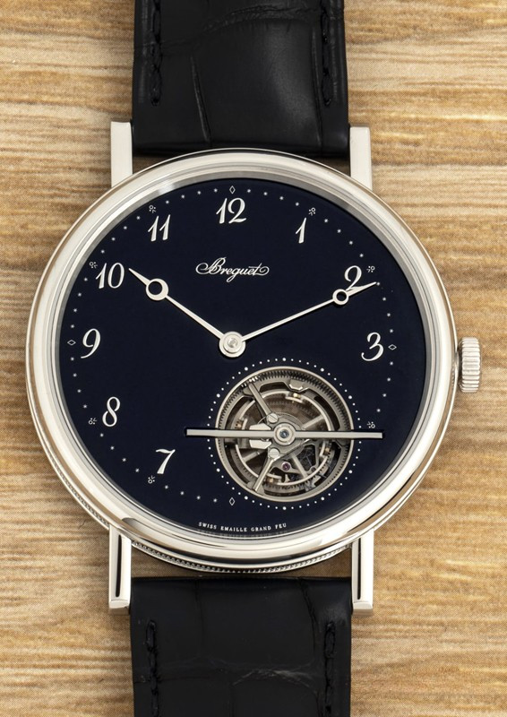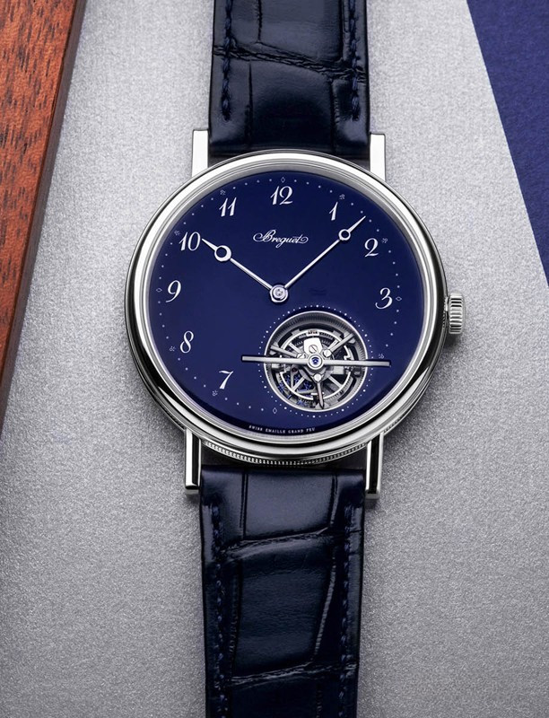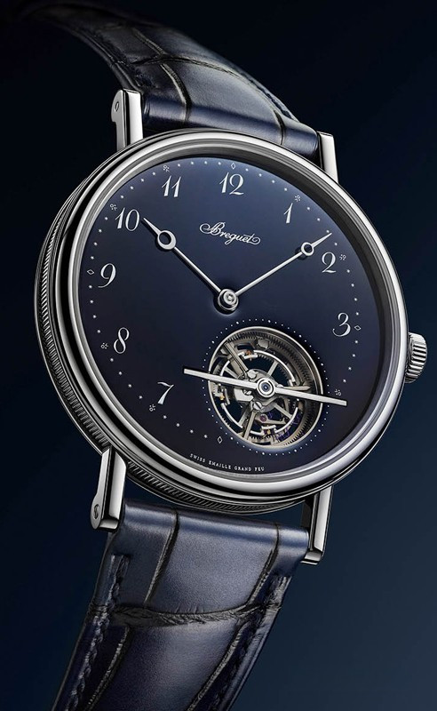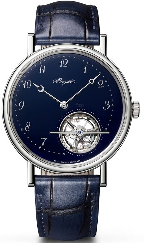 Часы Breguet 5367 представлены в корпусе из платины 950 размером 41 х 7.45 мм и водонепроницаемостью до 30 метров. Внутри корпуса установлен автоматический механизм, Калибр Breguet 581, с запасом хода 80 часов. На синем циферблате отображаются часы, минуты, секунды, клеть турбийона. Часы комплектуются ремешком из кожи аллигатора с вставкой из платины 950.