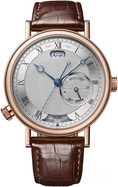 Корпус часов изготовлен из 18-каратного розового золота с тонко рифленой боковой поверхностью. Задняя крышка из прозрачного сапфирового стекла. Диаметр корпуса 43 мм, водонепроницаемость до 3 бар (30 м). Циферблат из посеребренного 18-каратного золота. Часы индивидуально пронумерованы и подписаны Breguet. На циферблате расположены римские цифры. 24-часовой индикатор расположен между 3 и 4 часами. Индикатор городов на 6 часах. Апертура даты на 12 часах. Стрелки из вороненой стали с яблоками Breguet. Часы комплектуются автоматическим механизмом 77F0 с запасом хода 55 часов и балансовой частотой 4 Гц. Поставлется на ремешке из кожи аллигатора с золотой застежкой.