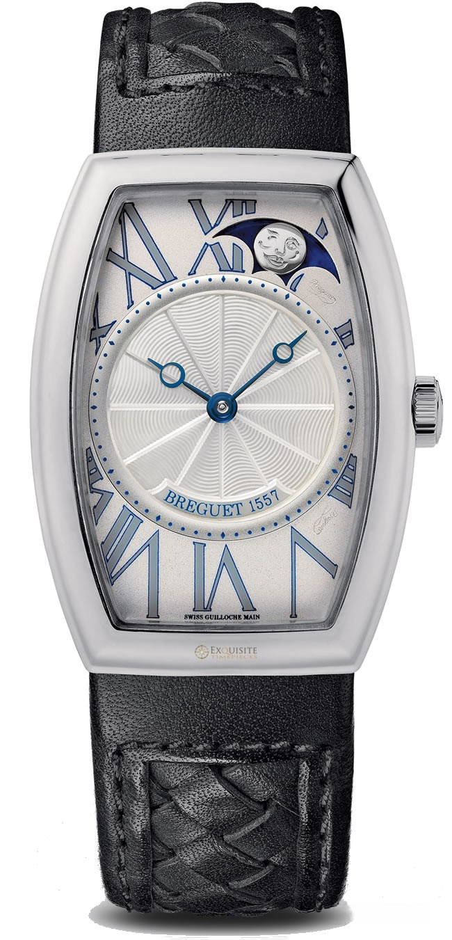 Часы Breguet Heritage 8860 Phases De Lune Retrograde 8860BB/11/386 выпущены в корпусе из белого золота 18к, размером 35 х 25 х 9,75 мм и водонепроницаемостью 30 м. Внутри корпуса установлен автоматический механизм с кремниевым спуском, Калибр 586/L. На бежевом жемчужном гильошированном циферблате отображаются часы, минуты, фаза луны. Запас хода 40 часов. Часы комплектуются кожаным ремешком с вставкой из белого золота 18к.