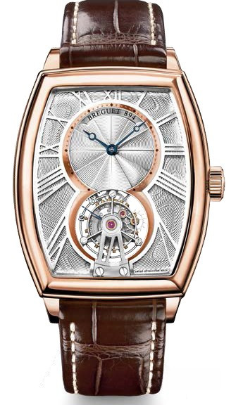 Часам Breguet не нужно иметь привычную круглую форму, чтобы быть узнаваемыми с первого вгляда. Ярким подтверждением этого являются часы коллекции Héritage с характерным изогнутым корпусом в форме "бочка" (tonneau). Стремление воплотить в жизнь творческие идеи XVIII столетия с учетом стилистических требований нынешнего века ставит перед инженерами, часовыми мастерами и дизайнерами циферблатов непростую задачу. Однако им с успехом удается справиться с ней: идеальные обтекаемые линии корпуса и украшенный изящным гильошированным узором циферблат великолепно перекликаются с формой корпусного кольца и креплениями для ремешка. Часы Héritage Tourbillon с изогнутым в двух направлениях корпусом в форме "бочка", из розового золота 18 карат. Механизм с ручным заводом, с турбийоном. Изогнутый в двух направлениях циферблат из посеребренного 18-каратного золота с гильошированным вручную узором. Часовая шкала с накладными римскими цифрами, вырезанными из цельной металлической пластины. Малая секундная стрелка на оси турбийона в положении "6 часов". Турбийон в форме римской цифры также выполняет функцию часового индекса. Запас хода 50 часов. Задняя крышка цельная с видом на механизм турбийона.