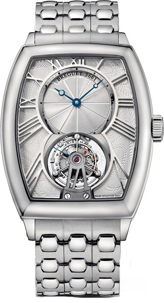 Часам Breguet не нужно иметь привычную круглую форму, чтобы быть узнаваемыми с первого вгляда. Ярким подтверждением этого являются часы коллекции Héritage с характерным изогнутым корпусом в форме "бочка" (tonneau). Стремление воплотить в жизнь творческие идеи XVIII столетия с учетом стилистических требований нынешнего века ставит перед инженерами, часовыми мастерами и дизайнерами циферблатов непростую задачу. Однако им с успехом удается справиться с ней: идеальные обтекаемые линии корпуса и украшенный изящным гильошированным узором циферблат великолепно перекликаются с формой корпусного кольца и креплениями для ремешка. Часы Héritage Tourbillon с изогнутым в двух направлениях корпусом в форме "бочка", из платины. Механизм с ручным заводом, с турбийоном. Изогнутый в двух направлениях циферблат из посеребренного 18-каратного золота с гильошированным вручную узором. Часовая шкала с накладными римскими цифрами, вырезанными из цельной металлической пластины. Малая секундная стрелка на оси турбийона в положении "6 часов". Турбийон в форме римской цифры также выполняет функцию часового индекса. Запас хода 50 часов. Задняя крышка цельная с видом на механизм турбийона. Часы поставляются на браслете из платины.