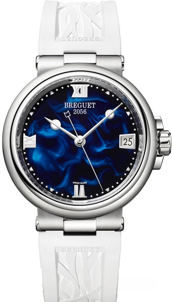 Часы Breguet Marine 9517 представлены в корпусе из нержавеющей стали размером 33.8 х 9.89 мм и водонепроницаемостью 50 метров. Внутри корпуса установлен автоматический механизм, Калибр 591A, обладающий запасом хода 38 часов. На синем жемчужном циферблате отображаются часы, минуты, секунды и дата. Часы поставляются на каучуковом ремешке с вставкой из нержавеющей стали.