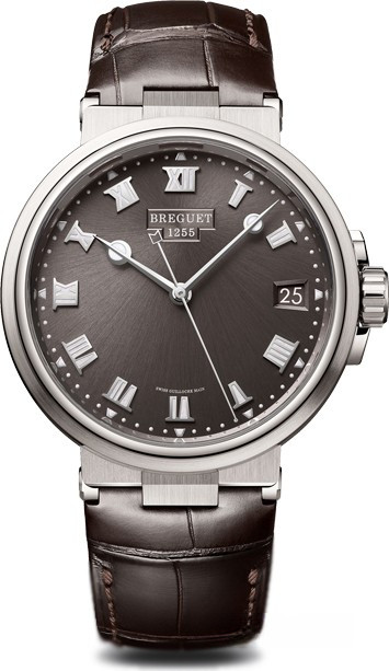 Часы Breguet Marine 5517 5517TI/G2/9ZU представлены в корпусе размером 40 мм из титана. На сером циферблате отображаются часы, минуты, секунды, дата. Внутри корпуса установлен автоматический механизм, Калибр 777A с запасом хода 55 часов. Часы поставляются на ремешке из кожи аллигатора с титановой вставкой. Водонепроницаемость 100 метров.