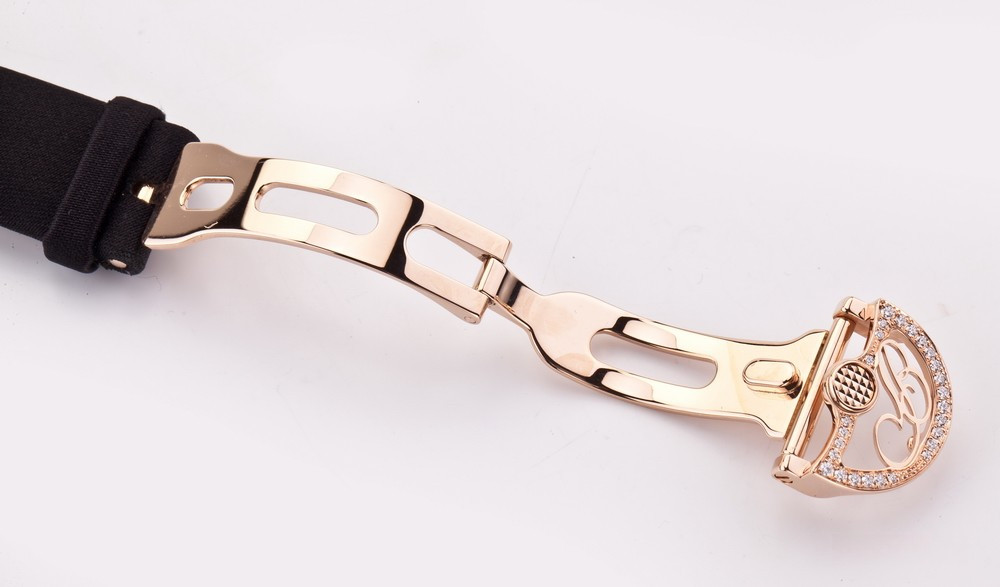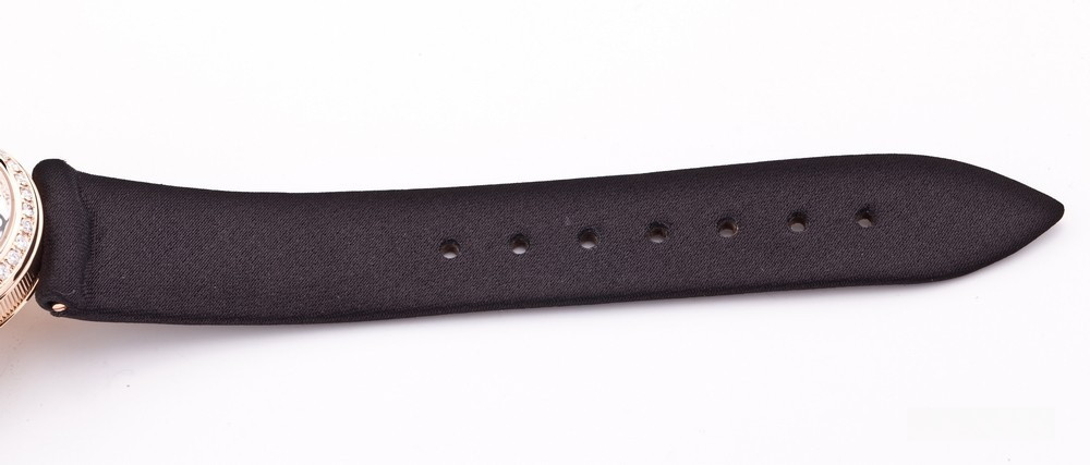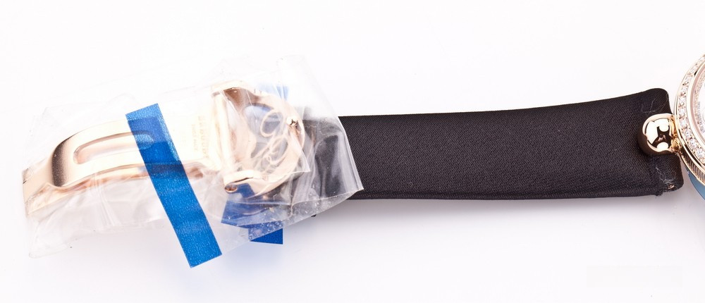 водонепроницаемость 30 м, безель из 117-и белых бриллиантов 0.99 ct., заводная головка инкрустирована белым бриллиантом 0.26 ct.
