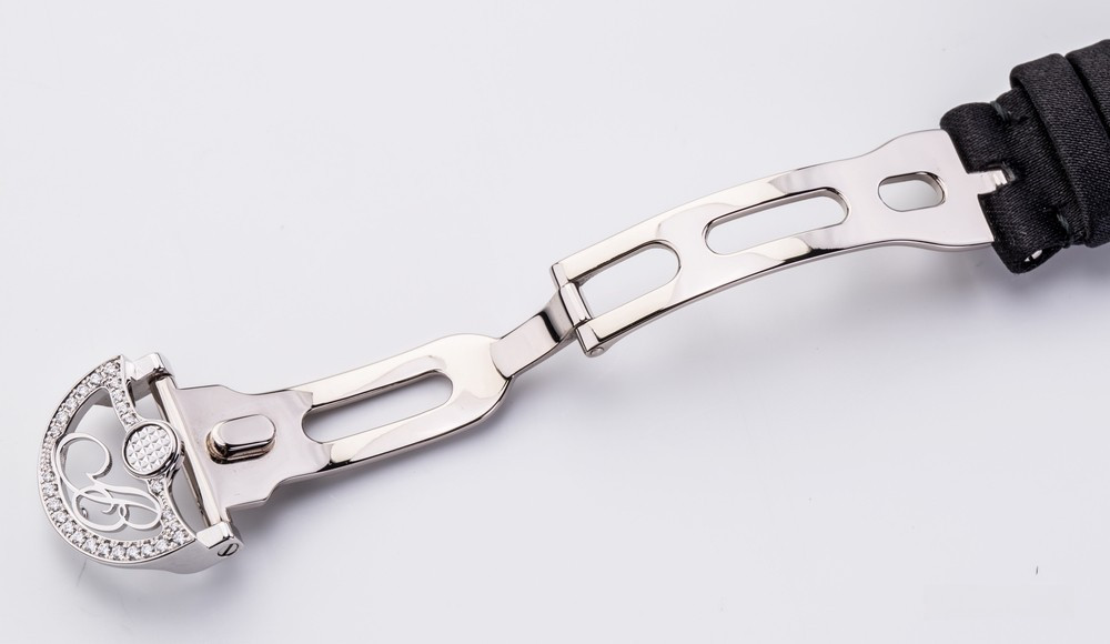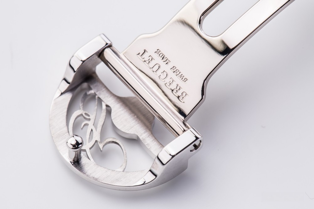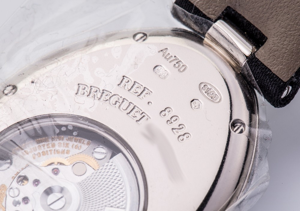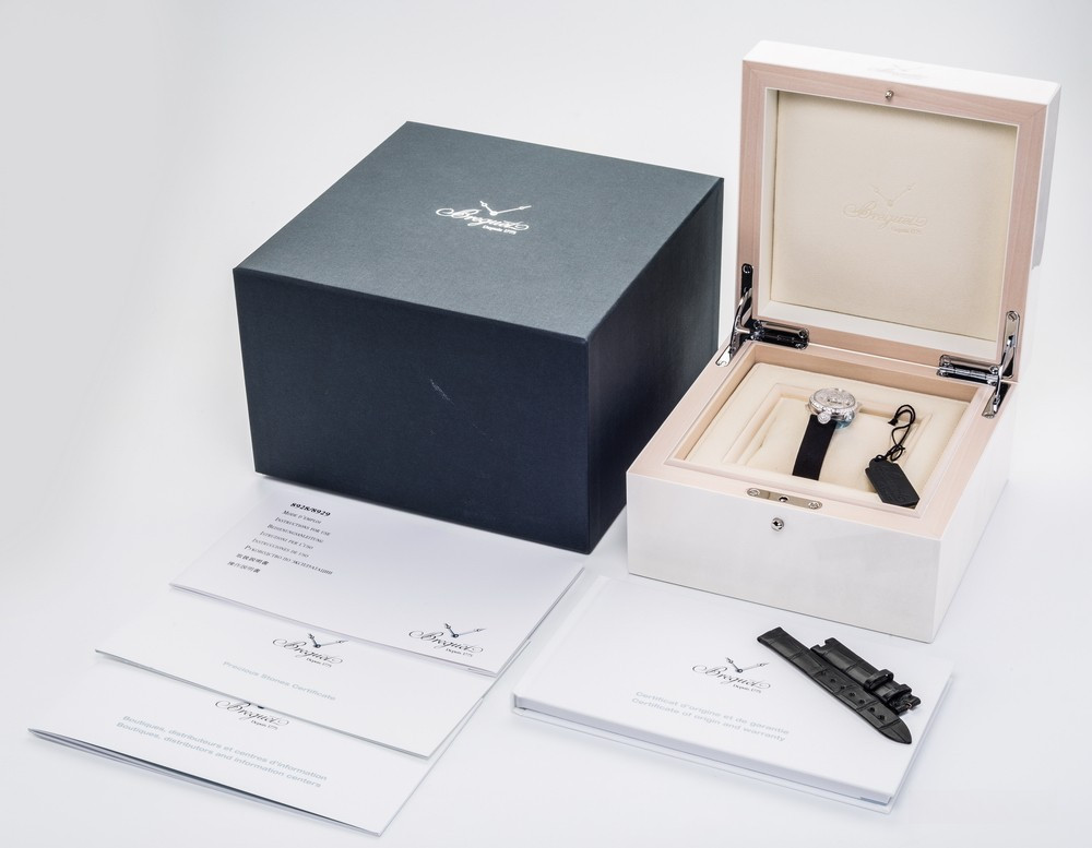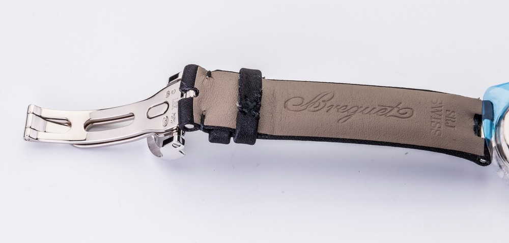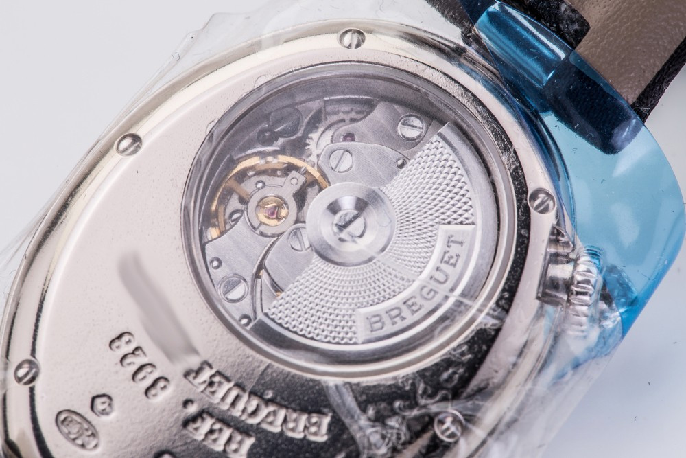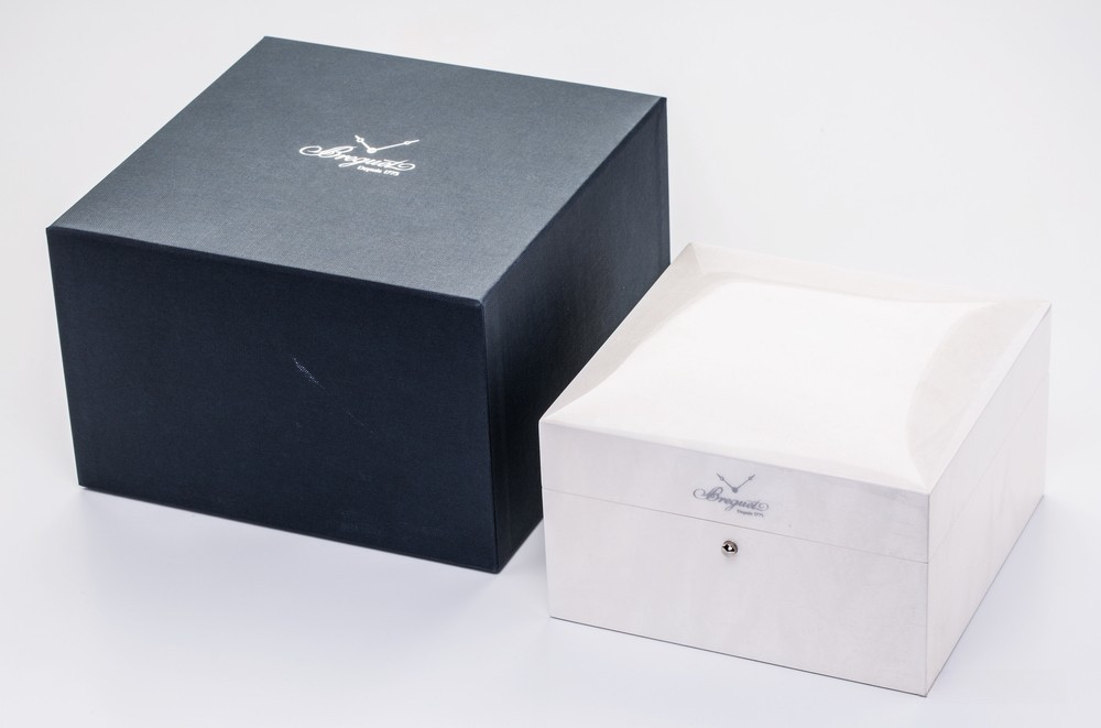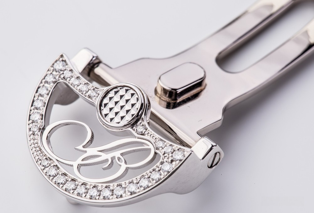Овальный корпус Breguet Reine de Naples 8928BB/8D/844 DD0D выполнен из 18-каратного белого золота и имеет размеры 33 x 24.95 x 8.6 мм. Заводная головка инкрустирована белым бриллиантом 0.26 ct. Циферблат из посеребренного золота отделан 211 бриллиантами 0,63 ct. Стрелки отлиты из вороненной стали и украшены "яблоками" Breguet. Автоматический механизм 586 имеет запас хода на 40 часов. Водонепроницаемость модели равняется 30 метрам. Безель и ушки корпуса украшены 139 бриллиантами (около 1,32 ct). Задняя крышка выполнена из сапфирового стекла. Часы завершает черный, атласный ремешок оснащенный золотой раскладывающейся застежкой 18 карат. Часы представлены в элегантной фирменной коробке с документами.
