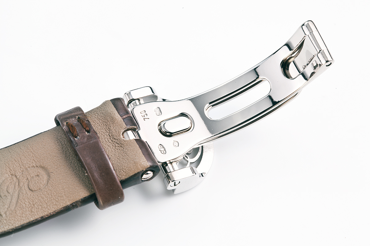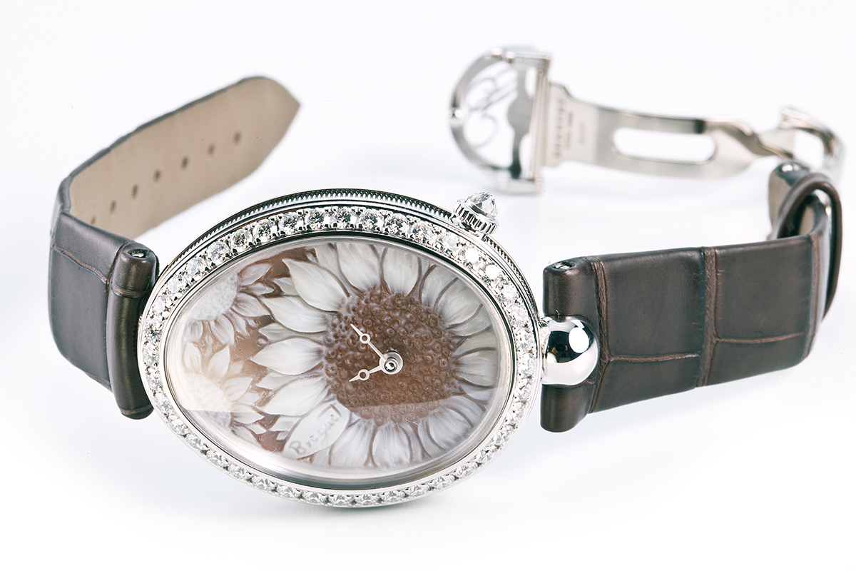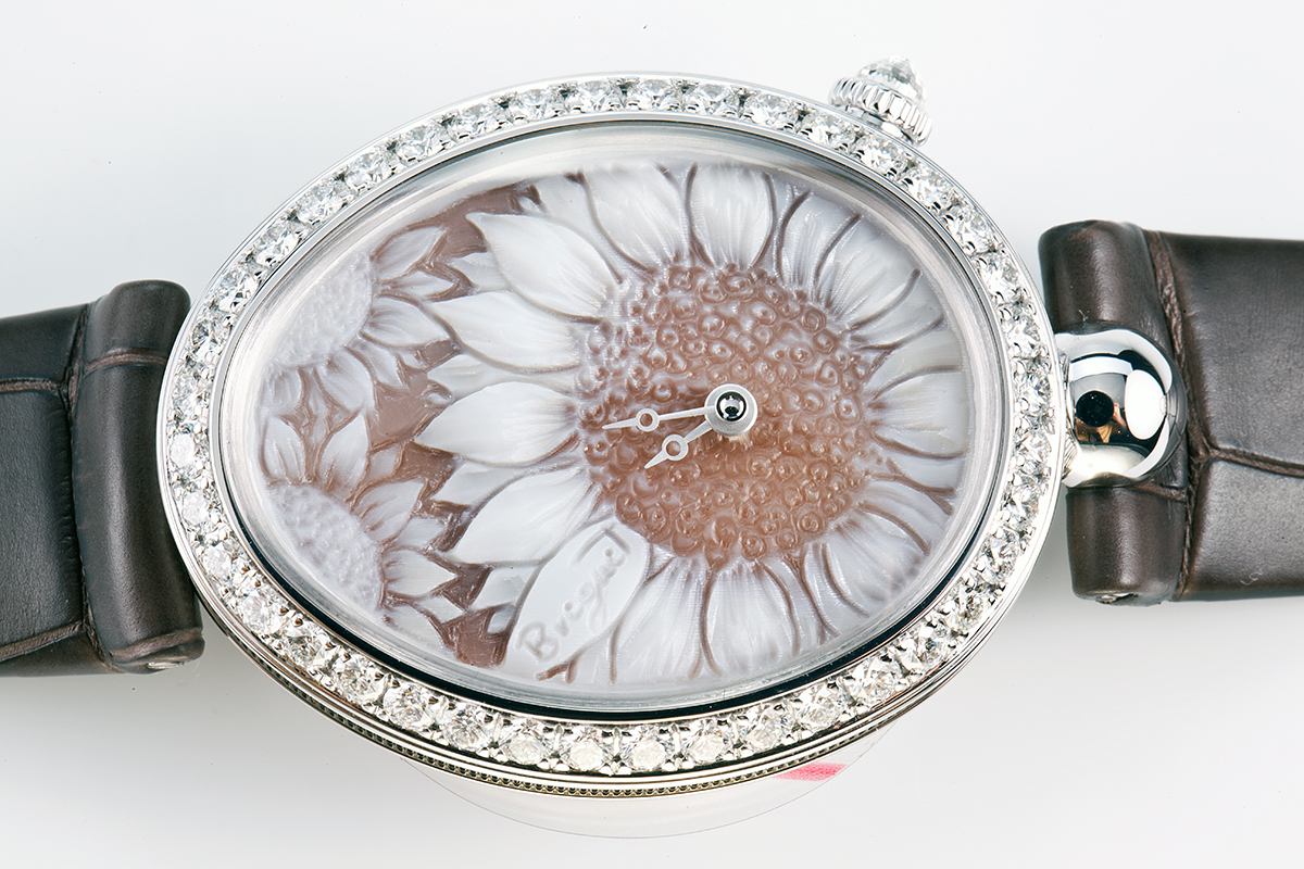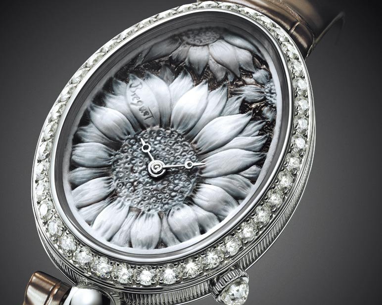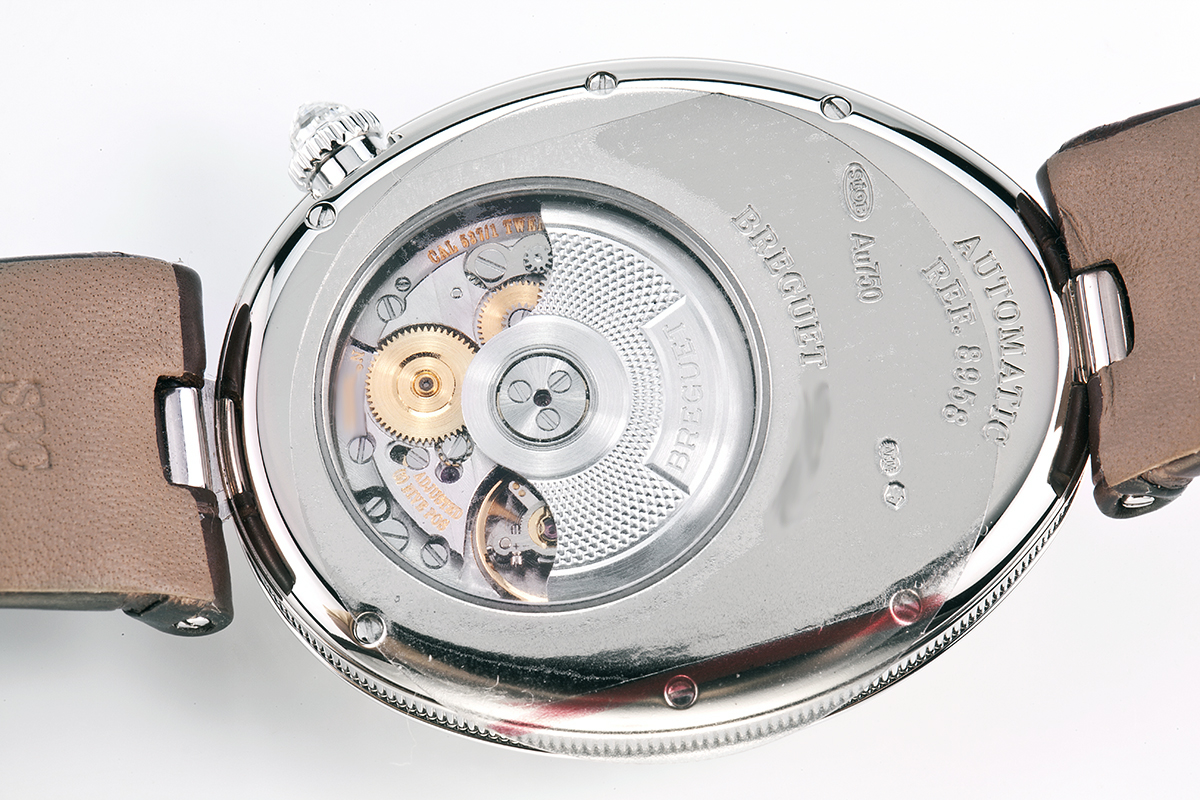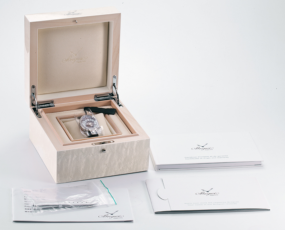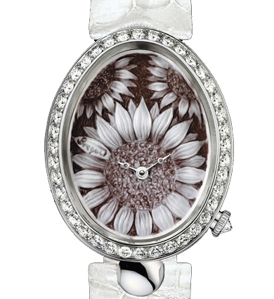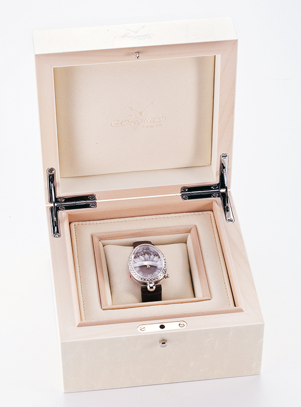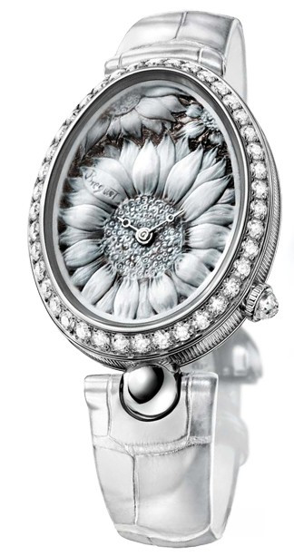 Часы Breguet Reine de Naples 8958BB/51/974 D00D выпущены в корпусе из белого золота 18к, размером 40 х 31.95 х 10.15 мм и водонепроницаемостью 30 м с безелем из 40-а белых бриллиантов 2.42ct. и заводным ключом, инкрустированным белым бриллиантом 0.26 ct. Внутри корпуса установлен автоматический механизм, Калибр 537/1. На сером с камеей из морской раковины циферблате отображаются часы, минуты. Запас хода 40 часов. Часы комплектуются ремешком из кожи аллигатора с золотой 18к вставкой, инкрустированной 26-ю белыми бриллиантами 0.14 ct. и откидной застежкой.