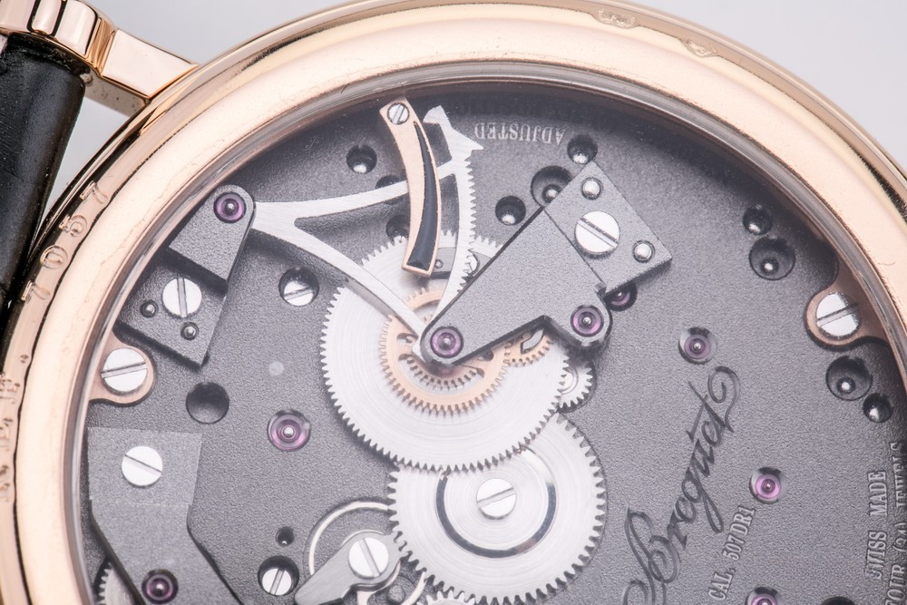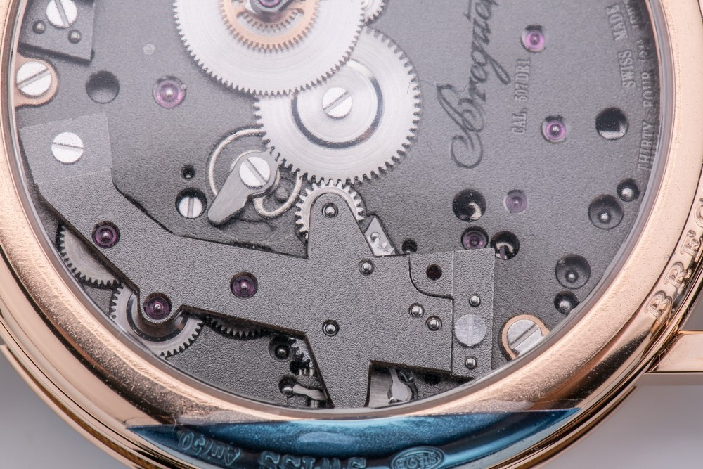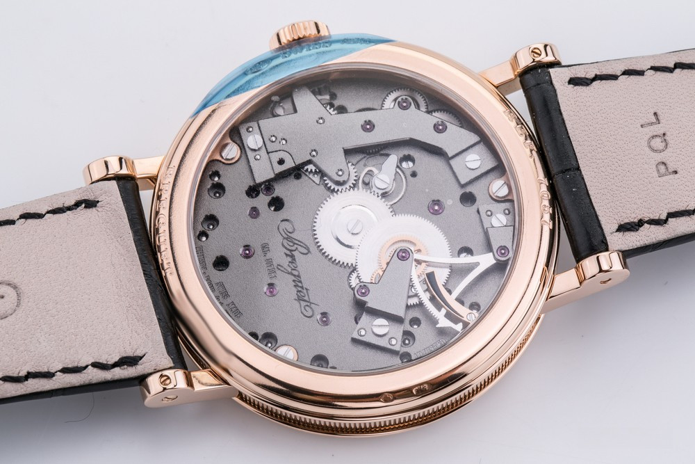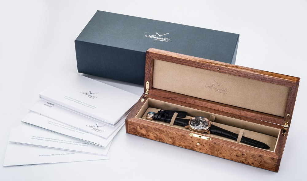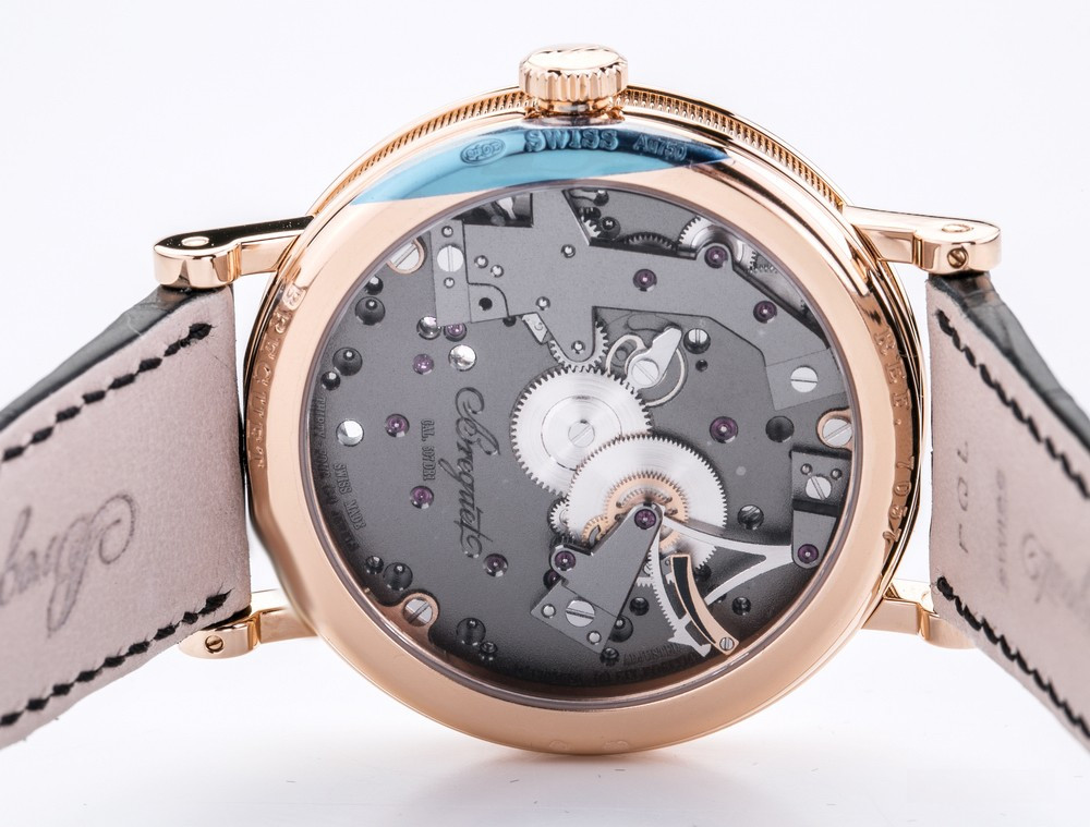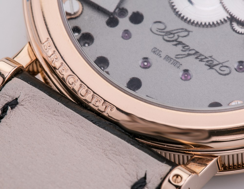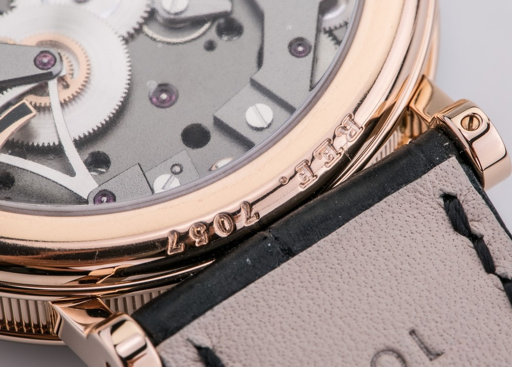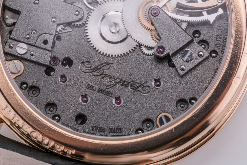 Breguet La Tradition - это сочетание многолетних традиций и нового дизайна. Союз классического циферблата и матового открытого механизма делают часы Tradition уникальными и не похожим на другие произведения часового искусства. Корпус часов сделан из розового золота 18 карат, черный циферблат гильоширован вручную. На передней и задней части часов установлено сапфировое стекло. Защита от воды стандартная для классических часов и составляет 30 метров. Внутри корпуса размером 40 x 11.65 мм заключен механизм с ручным заводом 507DR и запасом хода 50 часов. Часы комплектуются черым ремешком из кожи аллигатора с застежкой из розового золота 18к.
