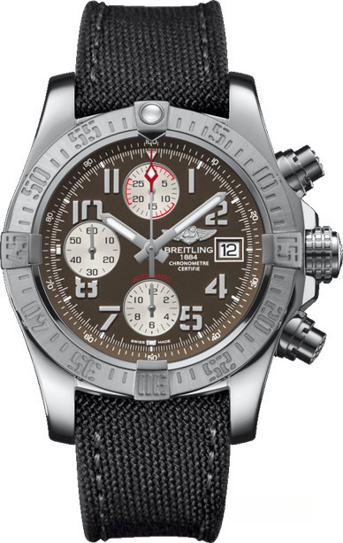 Мужские часы Avenger II изготовлены в корпусе из нержавеющей стали размером 43 х 16.5 мм и водонепроницаемостью 300 метров. На сером с серебристым циферблате отображаются часы, минуты, секунды и дата. Накопители хронографа расположены на 6, 9 и 12 часах, апертура даты расположена на 3-х часах. Внутри корпуса установлен автоматический механизм Breitling 13 с запасом хода 42 часа. Безель часов вращающийся. Часы комплектуются текстильным ремешком с вставкой из нержавеющей стали.