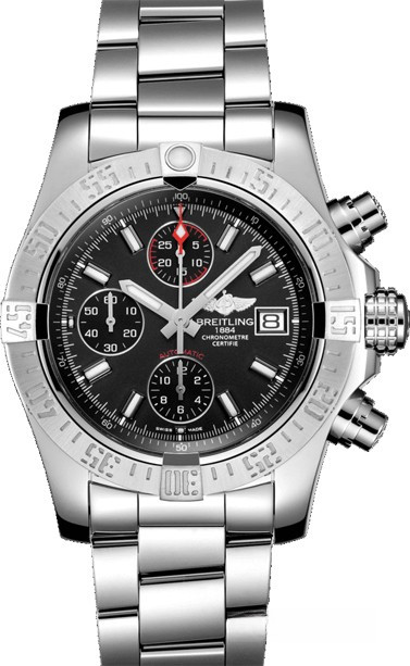 Мужские часы Avenger II изготовлены в корпусе из нержавеющей стали размером 43 х 16.5 мм и водонепроницаемостью 300 метров. На черном циферблате отображаются часы, минуты, секунды и дата. Накопители хронографа расположены на 6, 9 и 12 часах, апертура даты расположена на 3-х часах. Внутри корпуса установлен автоматический механизм Breitling 13 с запасом хода 42 часа. Безель часов вращающийся. Часы комплектуются браслетом из нержавеющей стали.