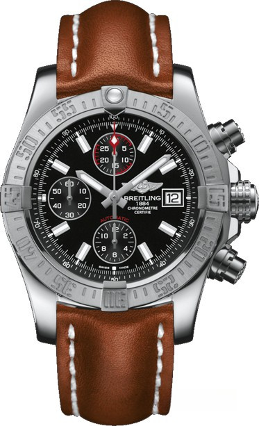 Мужские часы Avenger II изготовлены в корпусе из нержавеющей стали размером 43 х 16.5 мм и водонепроницаемостью 300 метров. На черном циферблате отображаются часы, минуты, секунды и дата. Накопители хронографа расположены на 6, 9 и 12 часах, апертура даты расположена на 3-х часах. Внутри корпуса установлен автоматический механизм Breitling 13 с запасом хода 42 часа. Безель часов вращающийся. Часы комплектуются кожаным ремешком с вставкой из нержавеющей стали.