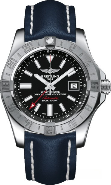 Мужские часы Avenger II GMT изготовлены в корпусе из нержавеющей стали размером 43 х 12.2 мм и водонепроницаемостью 300 метров. На черном циферблате отображаются часы, минуты, секунды и дата. Стрелка второго часового пояса отображается красным цветом и расположена по ценрту циферблата, апертура даты расположена на 3-х часах. Внутри корпуса установлен автоматический механизм Breitling 32 с запасом хода 42 часа. Безель часов вращающийся. Часы комплектуются кожаным ремешком с вставкой из нержавеющей стали.