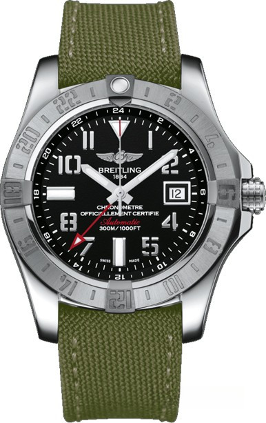 Мужские часы Avenger II GMT изготовлены в корпусе из нержавеющей стали размером 43 х 12.2 мм и водонепроницаемостью 300 метров. На черном циферблате отображаются часы, минуты, секунды и дата. Стрелка второго часового пояса отображается красным цветом и расположена по ценрту циферблата, апертура даты расположена на 3-х часах. Внутри корпуса установлен автоматический механизм Breitling 32 с запасом хода 42 часа. Безель часов вращающийся. Часы комплектуются текстильным ремешком с вставкой из нержавеющей стали.