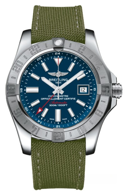 Мужские часы Avenger II GMT изготовлены в корпусе из нержавеющей стали размером 43 х 12.2 мм и водонепроницаемостью 300 метров. На синем циферблате отображаются часы, минуты, секунды и дата. Стрелка второго часового пояса отображается красным цветом и расположена по ценрту циферблата, апертура даты расположена на 3-х часах. Внутри корпуса установлен автоматический механизм Breitling 32 с запасом хода 42 часа. Безель часов вращающийся. Часы комплектуются текстильным ремешком с вставкой из нержавеющей стали.