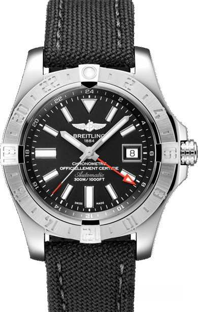 Мужские часы Avenger II GMT изготовлены в корпусе из нержавеющей стали размером 43 х 12.2 мм и водонепроницаемостью 300 метров. На черном циферблате отображаются часы, минуты, секунды и дата. Стрелка второго часового пояса отображается красным цветом и расположена по ценрту циферблата, апертура даты расположена на 3-х часах. Внутри корпуса установлен автоматический механизм Breitling 32 с запасом хода 42 часа. Безель часов вращающийся. Часы комплектуются текстильным ремешком с вставкой из нержавеющей стали.