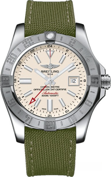 Мужские часы Avenger II GMT изготовлены в корпусе из нержавеющей стали размером 43 х 12.2 мм и водонепроницаемостью 300 метров. На серебристом циферблате отображаются часы, минуты, секунды и дата. Стрелка второго часового пояса отображается красным цветом и расположена по ценрту циферблата, апертура даты расположена на 3-х часах. Внутри корпуса установлен автоматический механизм Breitling 32 с запасом хода 42 часа. Безель часов вращающийся. Часы комплектуются текстильным ремешком с вставкой из нержавеющей стали.