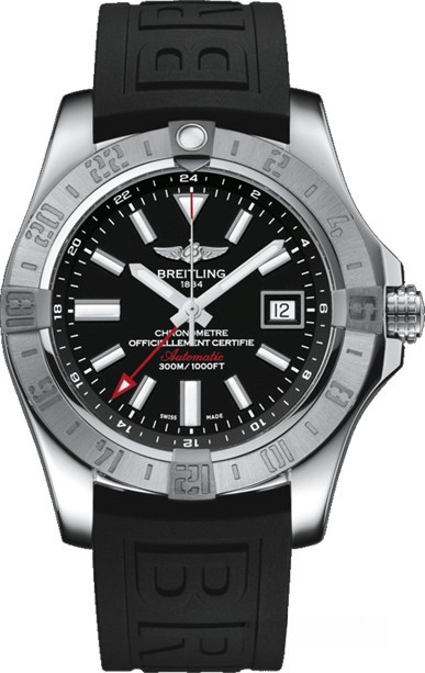 Мужские часы Avenger II GMT изготовлены в корпусе из нержавеющей стали размером 43 х 12.2 мм и водонепроницаемостью 300 метров. На черном циферблате отображаются часы, минуты, секунды и дата. Стрелка второго часового пояса отображается красным цветом и расположена по ценрту циферблата, апертура даты расположена на 3-х часах. Внутри корпуса установлен автоматический механизм Breitling 32 с запасом хода 42 часа. Безель часов вращающийся. Часы комплектуются каучуковым ремешком с вставкой из нержавеющей стали.