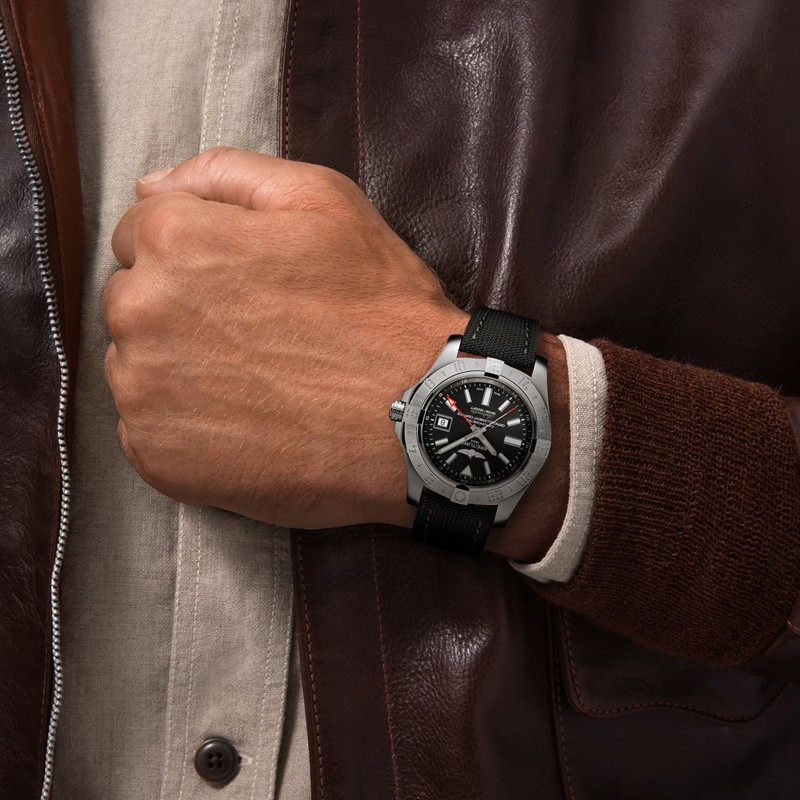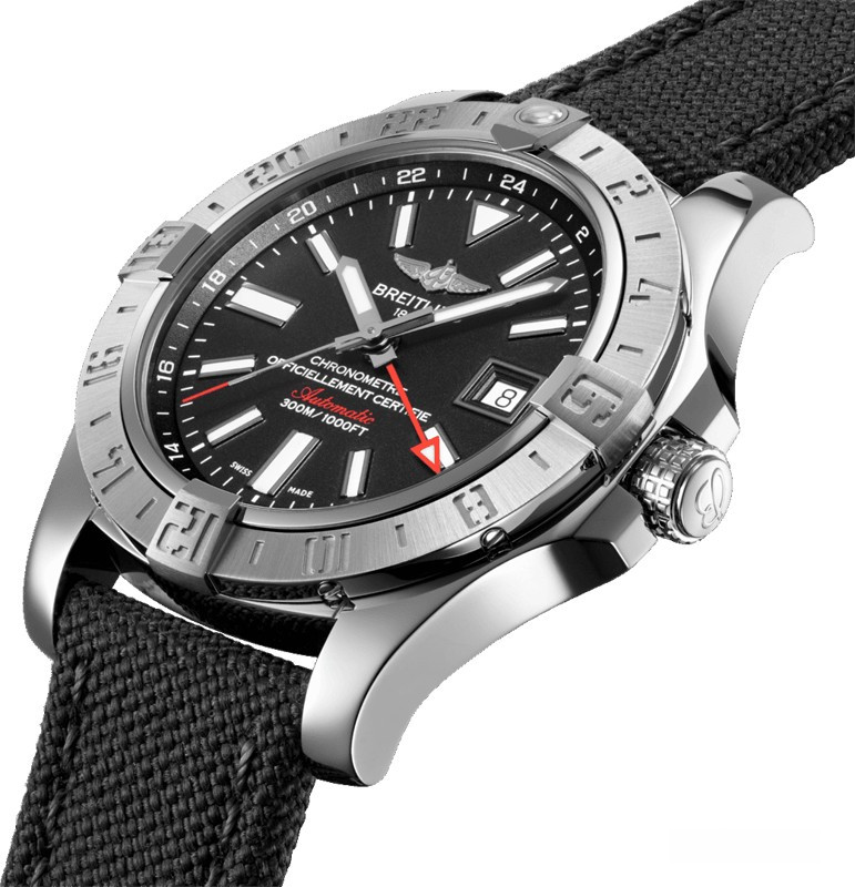 Мужские часы Avenger II GMT изготовлены в корпусе из нержавеющей стали размером 43 х 12.2 мм и водонепроницаемостью 300 метров. На черном циферблате отображаются часы, минуты, секунды и дата. Стрелка второго часового пояса отображается красным цветом и расположена по ценрту циферблата, апертура даты расположена на 3-х часах. Внутри корпуса установлен автоматический механизм Breitling 32 с запасом хода 42 часа. Безель часов вращающийся. Часы комплектуются текстильным ремешком с вставкой из нержавеющей стали.