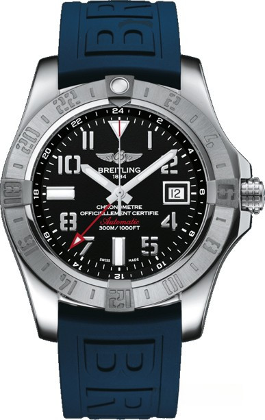 Мужские часы Avenger II GMT изготовлены в корпусе из нержавеющей стали размером 43 х 12.2 мм и водонепроницаемостью 300 метров. На черном циферблате отображаются часы, минуты, секунды и дата. Стрелка второго часового пояса отображается красным цветом и расположена по ценрту циферблата, апертура даты расположена на 3-х часах. Внутри корпуса установлен автоматический механизм Breitling 32 с запасом хода 42 часа. Безель часов вращающийся. Часы комплектуются каучуковым ремешком с вставкой из нержавеющей стали.