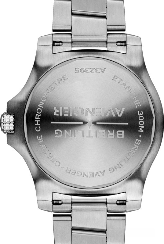 Мужские часы Avenger II GMT изготовлены в корпусе из нержавеющей стали размером 43 х 12.31 мм и водонепроницаемостью 300 метров. На синем циферблате отображаются часы, минуты, секунды и дата. Стрелка второго часового пояса отображается красным цветом и расположена по ценрту циферблата, апертура даты расположена на 3-х часах. Внутри корпуса установлен автоматический механизм Breitling 32 с запасом хода 42 часа. Безель часов вращающийся. Часы комплектуются браслетом из нержавеющей стали.