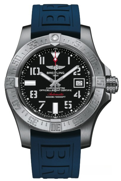 Мужские часы Avenger II Seawolf изготовлены в корпусе из нержавеющей стали размером 45 х 18.4 мм и водонепроницаемостью 3000 метров. На черном циферблате отображаются часы, минуты, секунды и дата. Апертура даты расположена на 3-х часах. Внутри корпуса установлен автоматический механизм Breitling 17 с запасом хода 40 часов. Безель часов вращающийся. Часы комплектуются каучуковым ремешком с вставкой из нержавеющей стали.