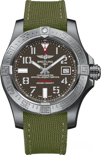 Мужские часы Avenger II Seawolf изготовлены в корпусе из нержавеющей стали размером 45 х 18.4 мм и водонепроницаемостью 3000 метров. На сером циферблате отображаются часы, минуты, секунды и дата. Апертура даты расположена на 3-х часах. Внутри корпуса установлен автоматический механизм Breitling 17 с запасом хода 40 часов. Безель часов вращающийся. Часы комплектуются текстильным ремешком с вставкой из нержавеющей стали.