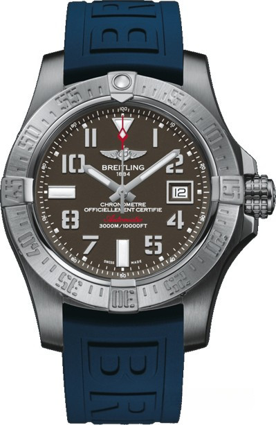 Мужские часы Avenger II Seawolf изготовлены в корпусе из нержавеющей стали размером 45 х 18.4 мм и водонепроницаемостью 3000 метров. На сером циферблате отображаются часы, минуты, секунды и дата. Апертура даты расположена на 3-х часах. Внутри корпуса установлен автоматический механизм Breitling 17 с запасом хода 40 часов. Безель часов вращающийся. Часы комплектуются каучуковым ремешком с вставкой из нержавеющей стали.